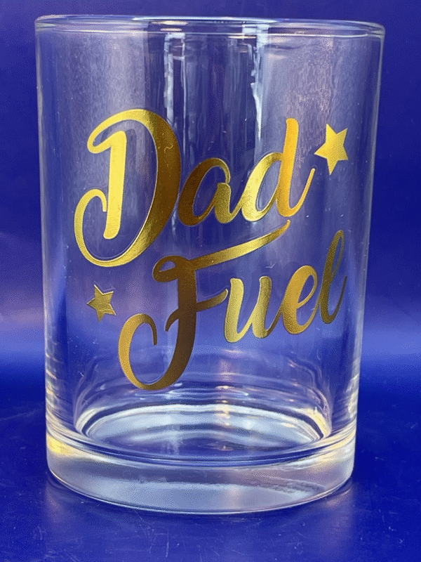 There’s an exquisite design on this  14-ounce glass. It features a striking black background adorned with ornate gold imagery that commands attention.