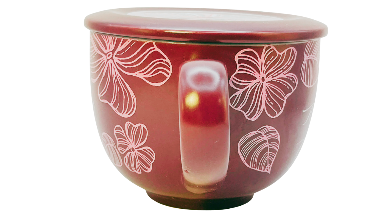 Because the floral artwork continues around the mug, each angle reveals another decorative detail. As a result, the design feels both balanced and thoughtfully composed.