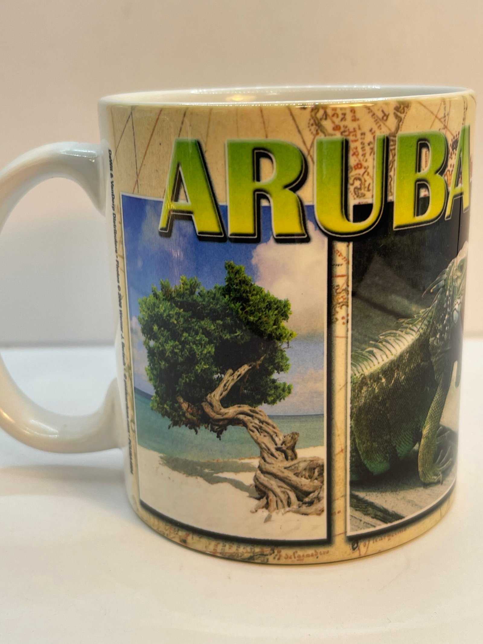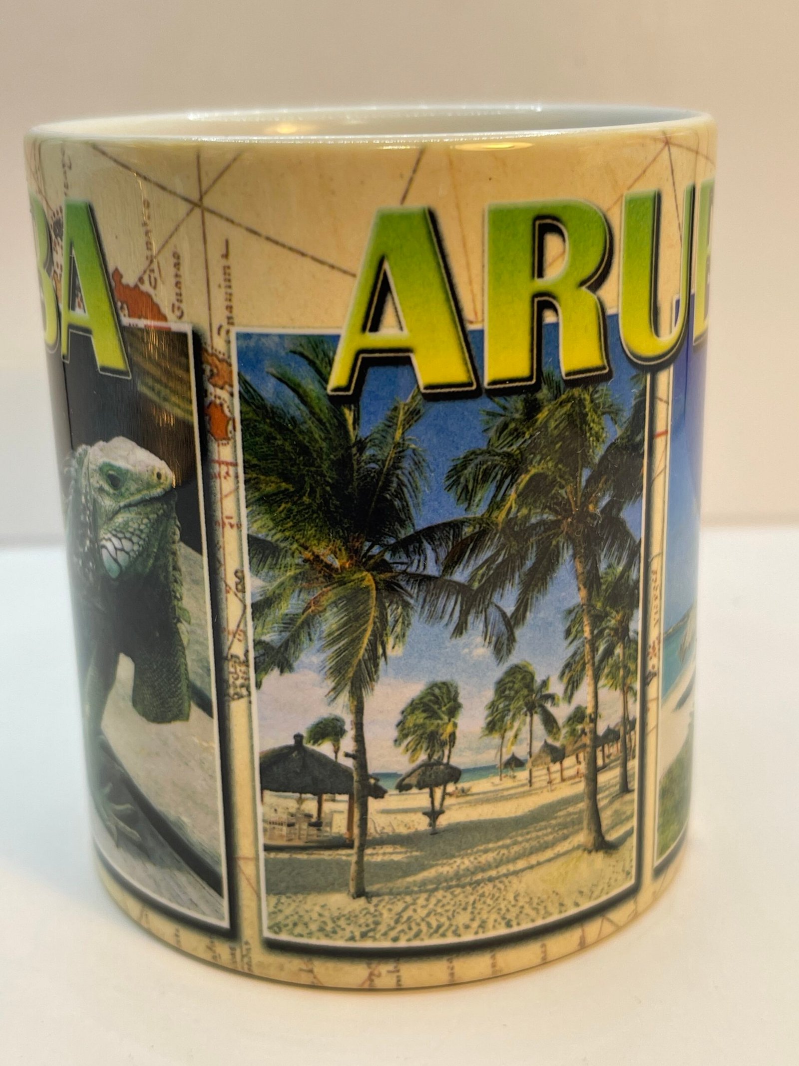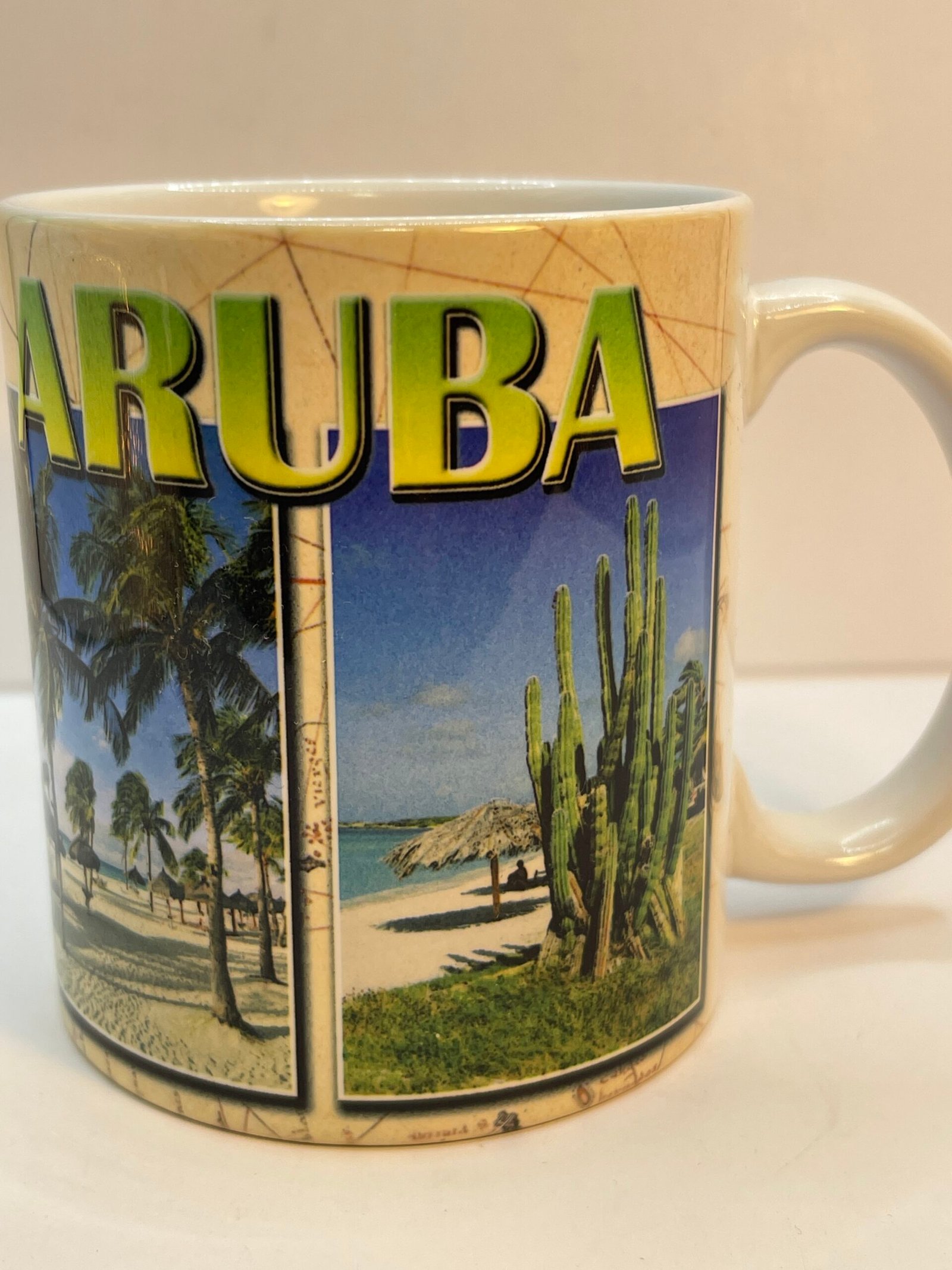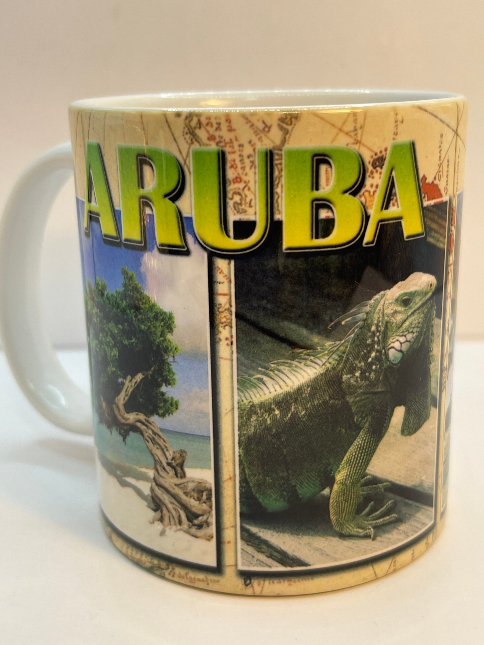 In fact, the Aruba Souvenir Coffee Cup Mug is a 10-ounce white ceramic mug wrapped in a photo collage that celebrates the unique beauty of Aruba.