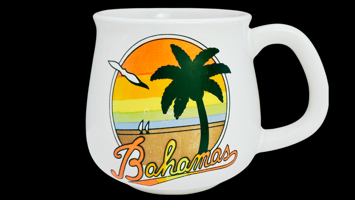 Meanwhile, tropical sunset graphics have remained popular in vintage souvenir drinkware for years. For example, palm trees, sailboats, and glowing beach skies are classic visual themes tied to island vacations and cruise memories. You can explore more about the Bahamas and its island experiences here: