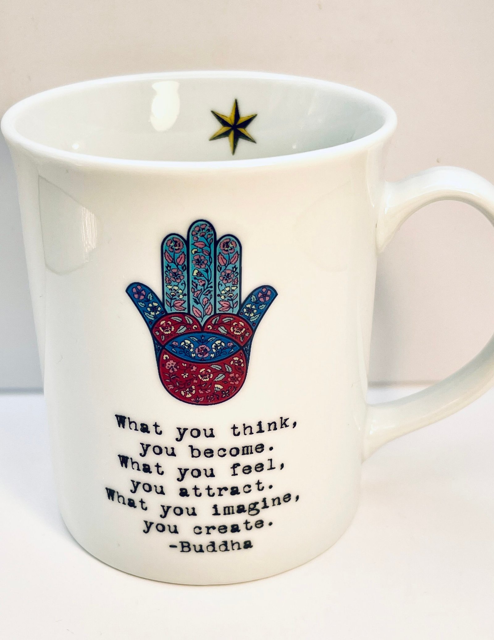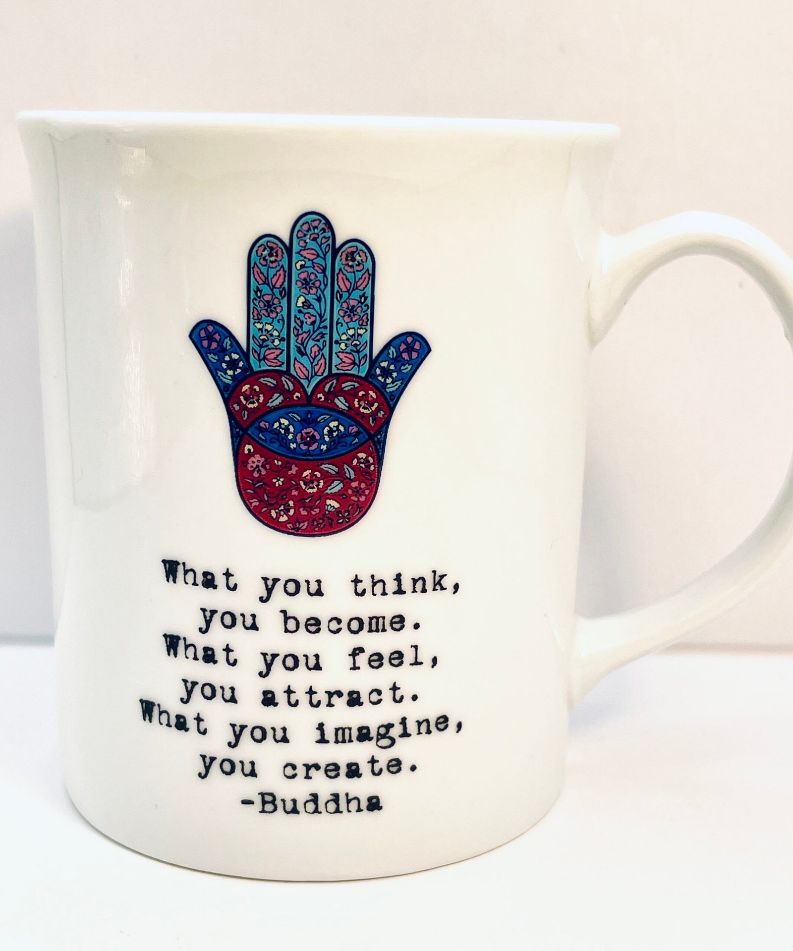 Start your mornings with mindfulness and motivation with the Buddha Hamsa Hand Mug of Inspiration! It’s the perfect #cupofmood and beacon of positivity and protection!