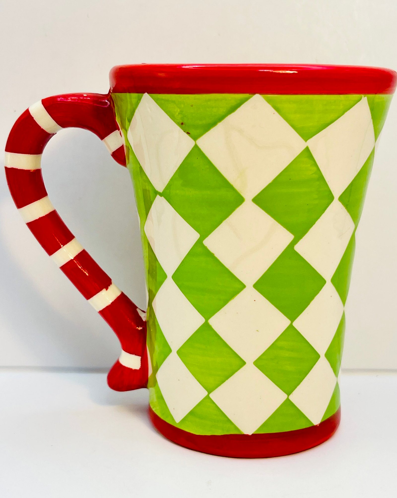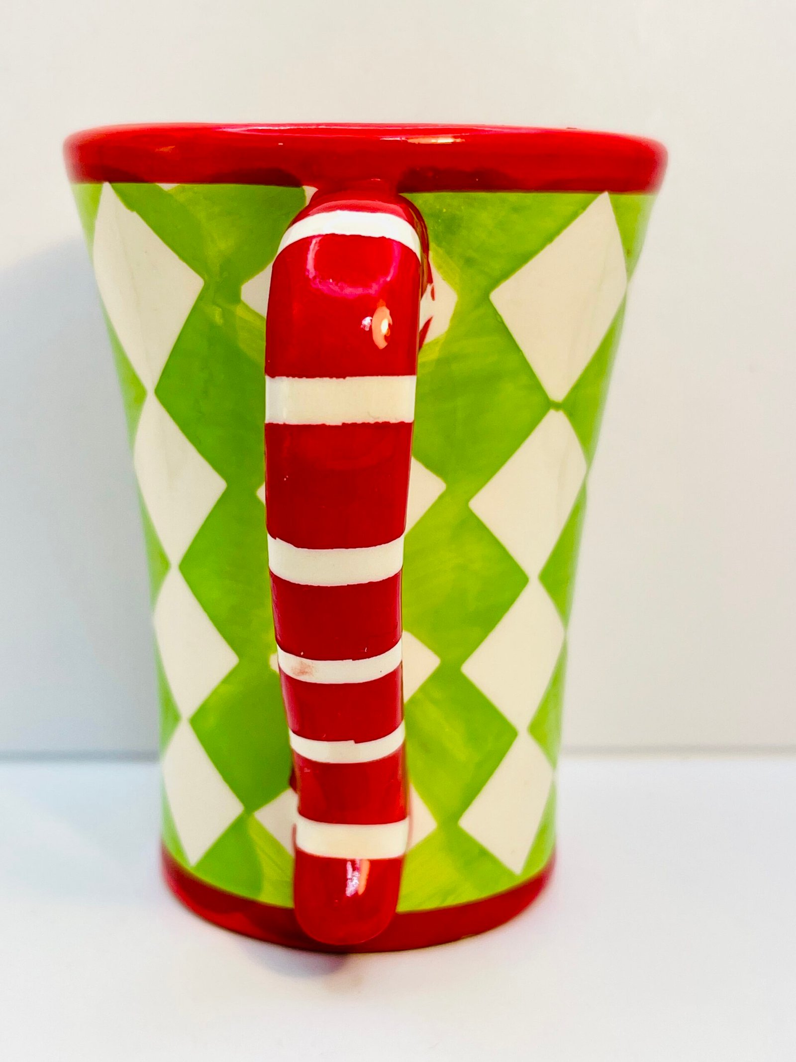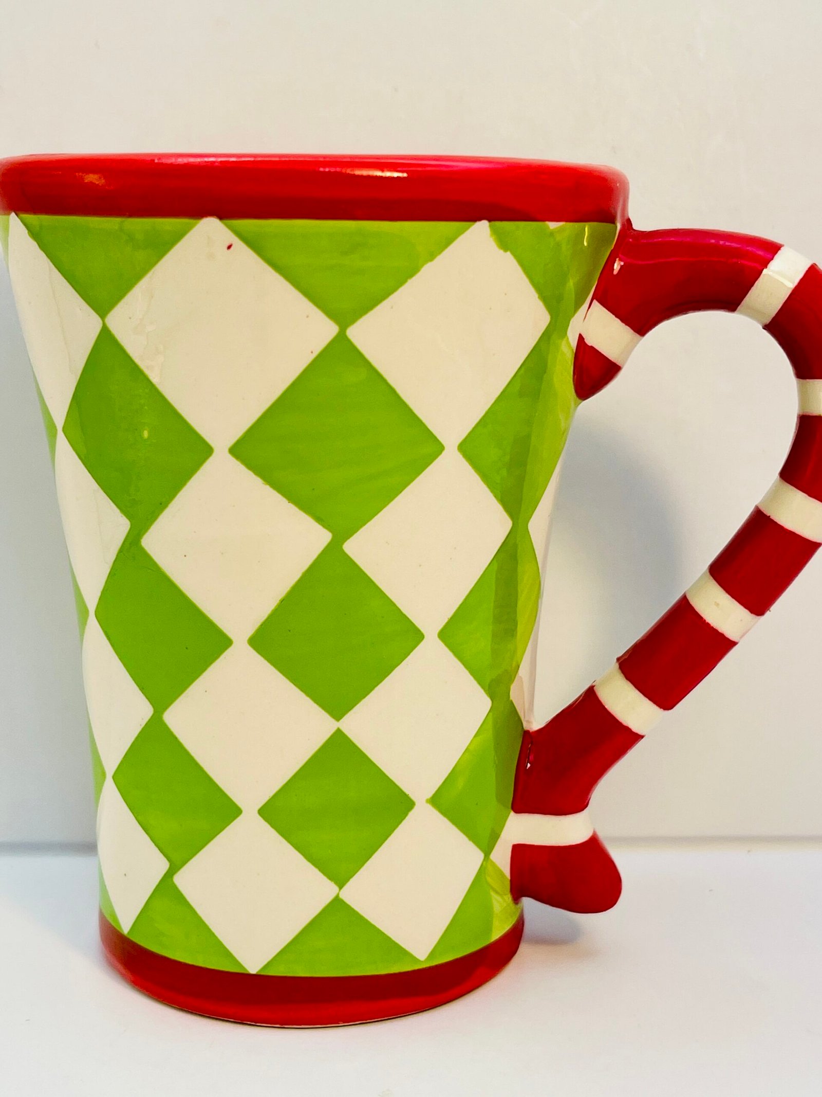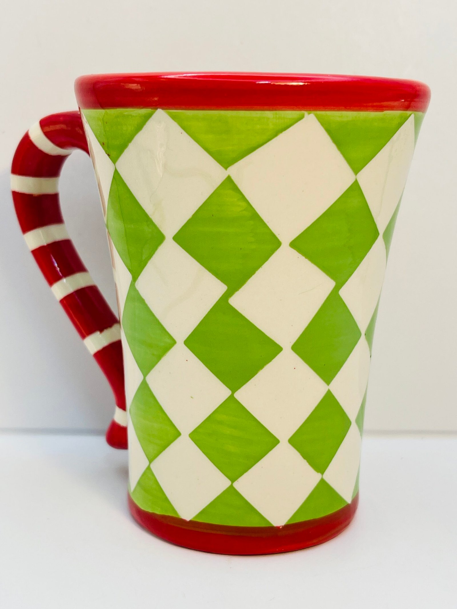 In fact this ceramic Christmas mug features a striking green-and-white diamond harlequin pattern that feels timeless yet fun. Just like vintage holiday décor brought back to life.