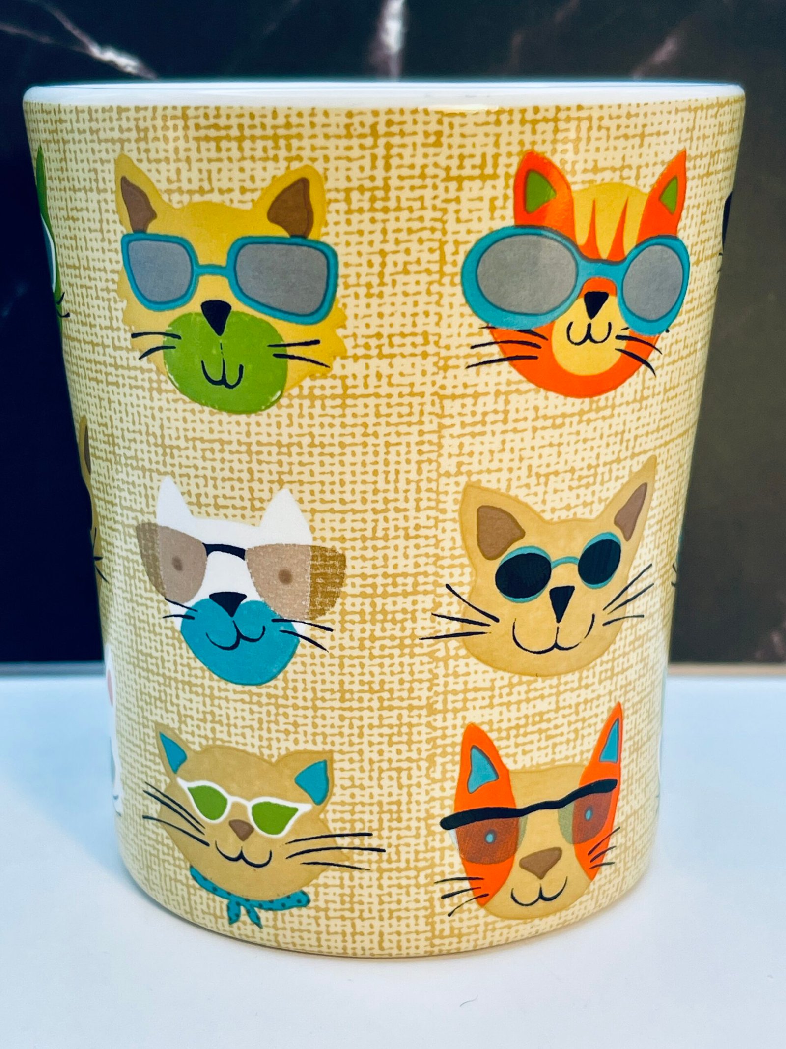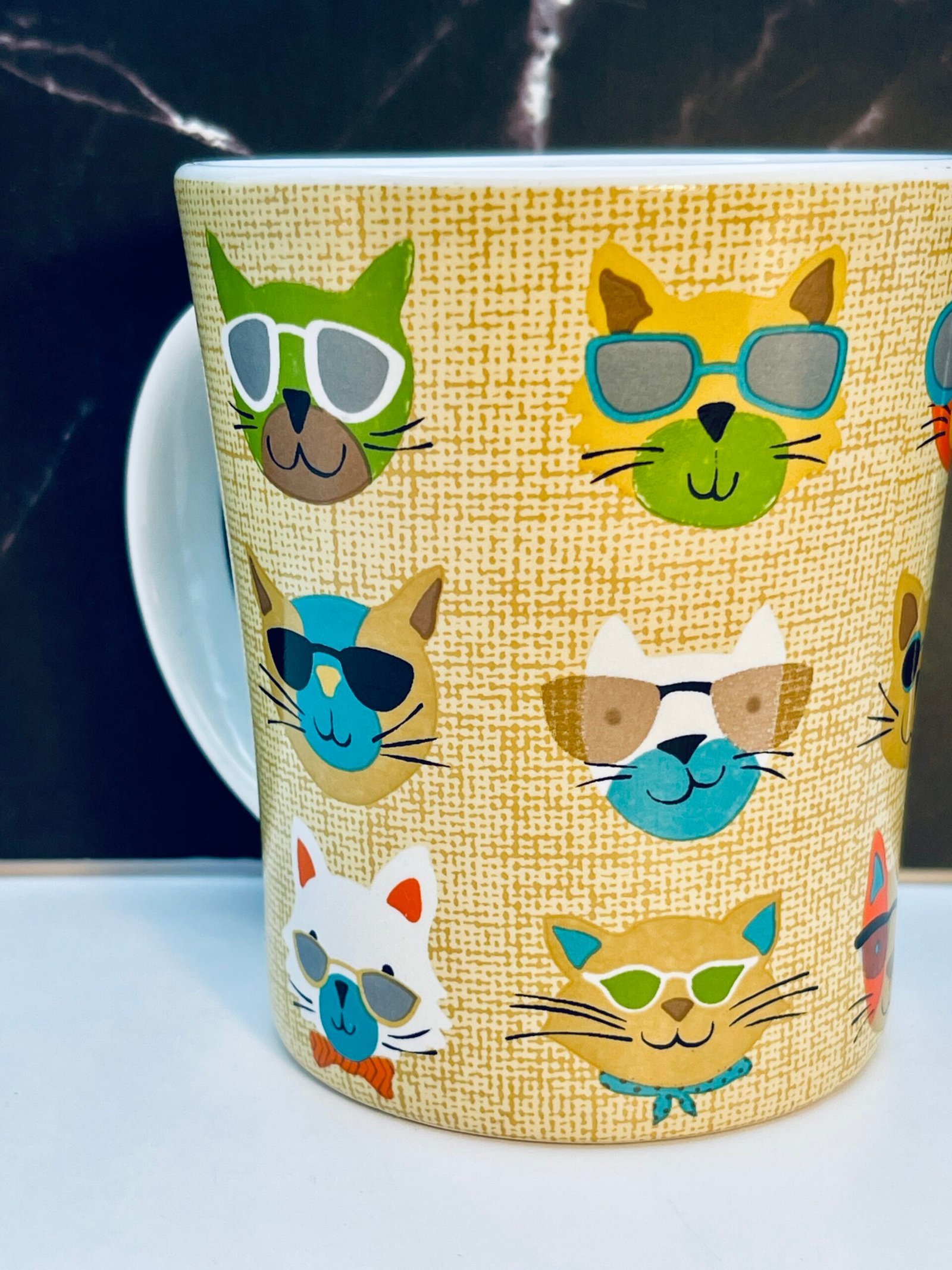 In fact add playful charm to your coffee routine with the Cats in Sunglasses Ceramic Coffee Mug. This 11-ounce ceramic mug features whimsical illustrations of cats sporting different styles of sunglasses. And set against a textured light-colored background.