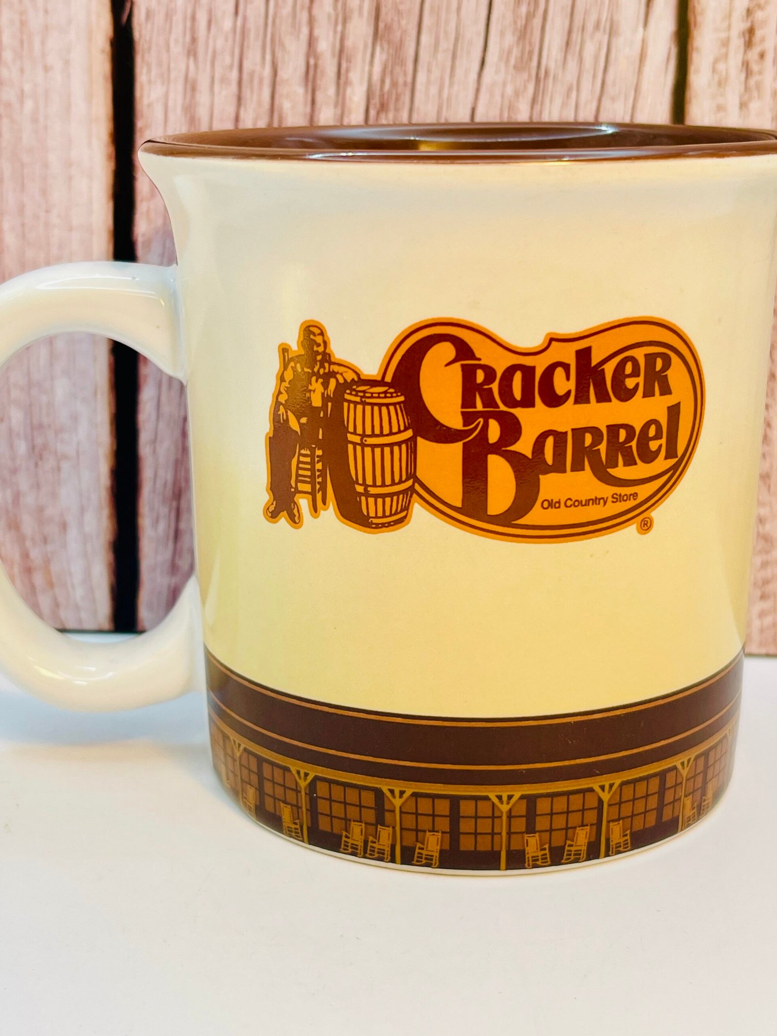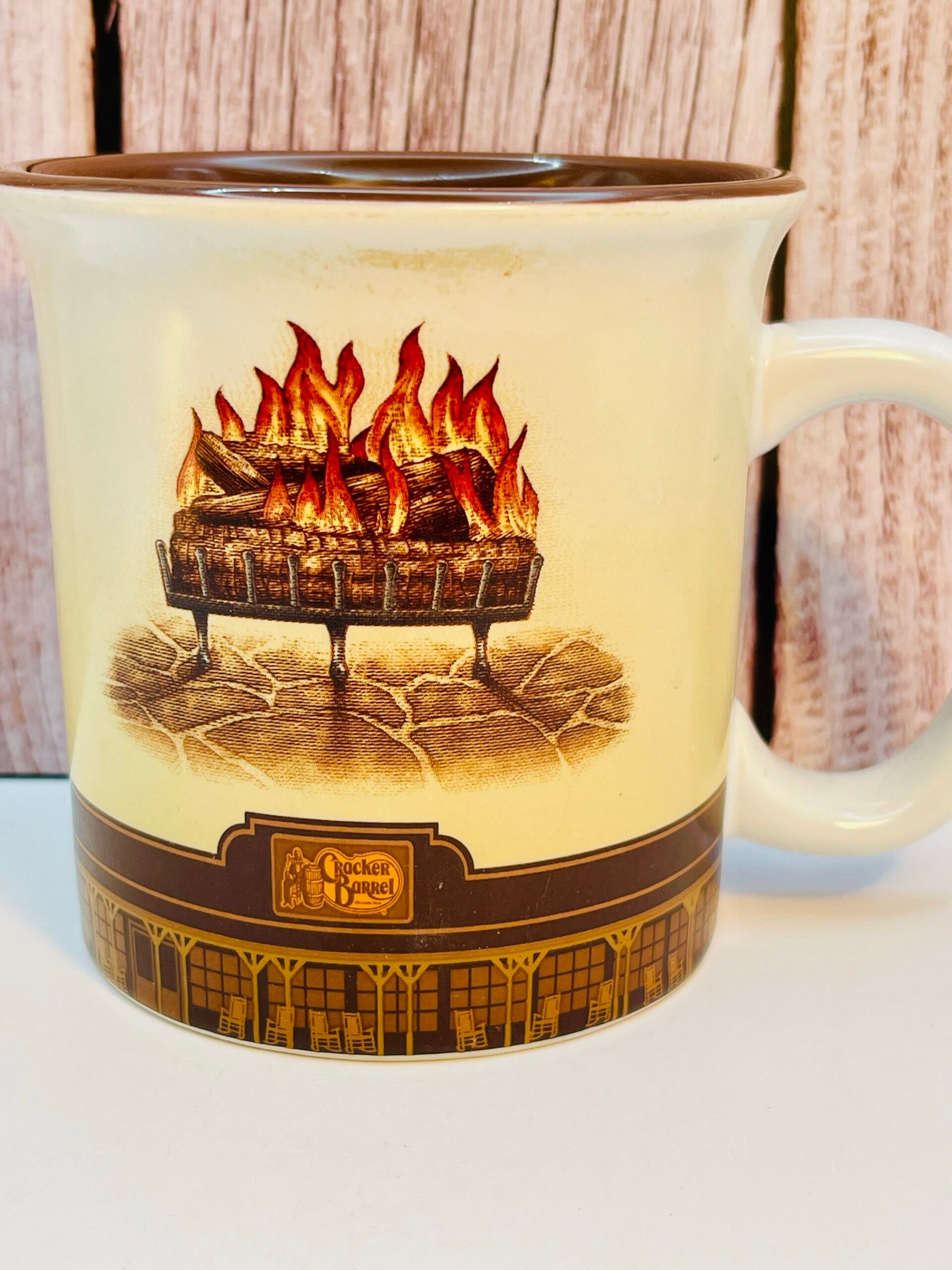 In fact, featuring a cozy fireplace on one side and the iconic Cracker Barrel logo on the other. This mug instantly transports you to the welcoming charm of a classic Cracker Barrel front porch.