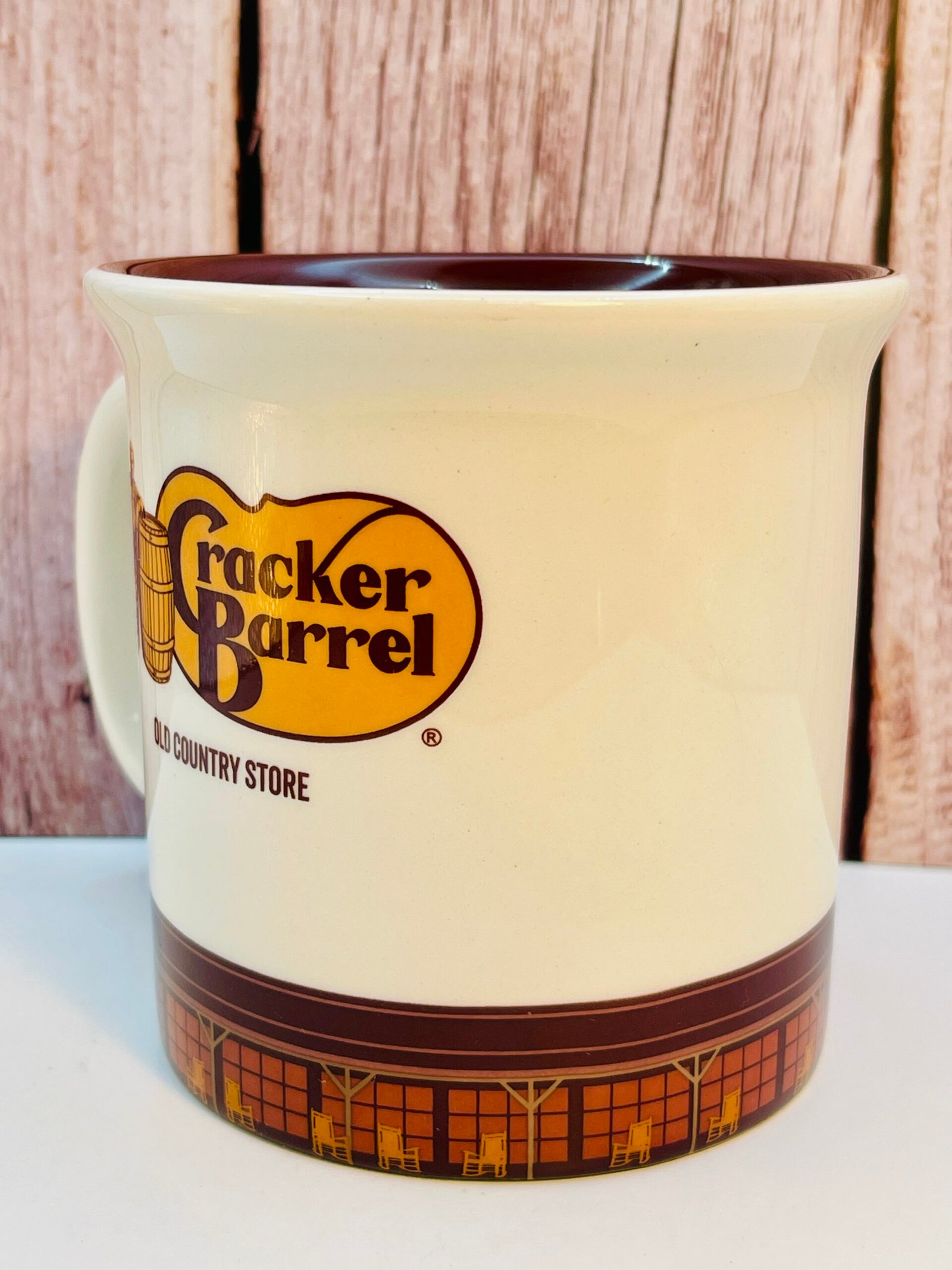 Indeed, this 16-ounce stoneware collectible captures the spirit of the Cracker Barrel front porch and brings it right into your kitchen.
