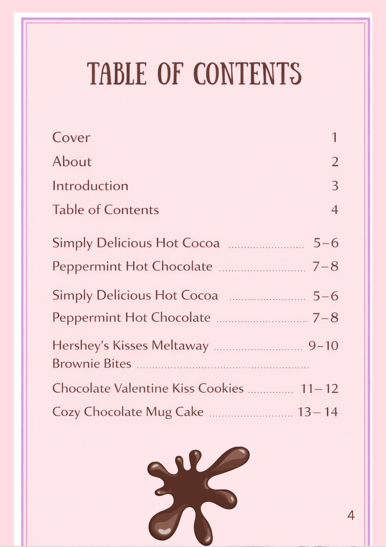 This digital collection brings together five cozy chocolate recipes made for slow sips and comforting bites. Each recipe encourages you to pause, settle in, and enjoy the process just as much as the final treat.