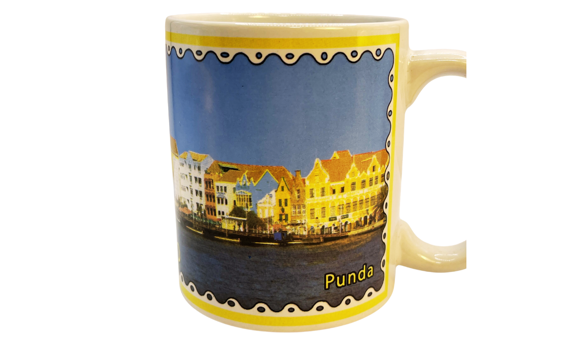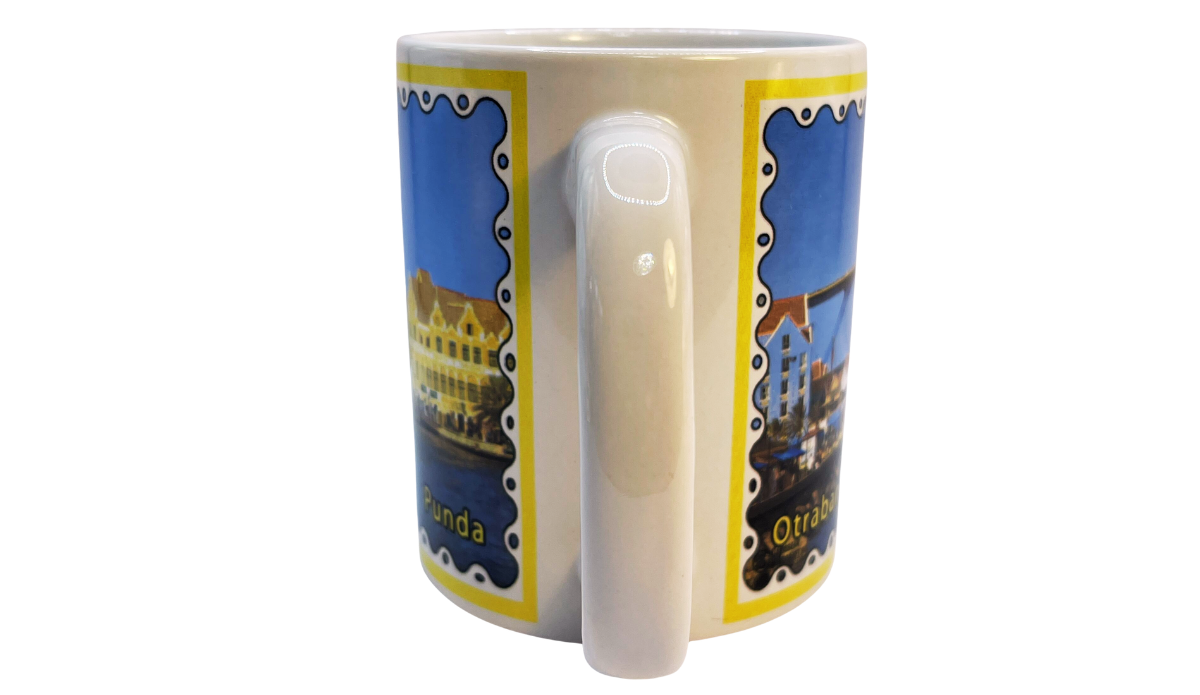 This mug features a panoramic wraparound design highlighting Punda, Otrabanda, and Willemstad. As a result, it tells a full visual story instead of showing just one snapshot. At the same time, the classic postcard-style border adds a vintage travel aesthetic. Because of that, it fits beautifully into both curated collections and everyday kitchen displays.