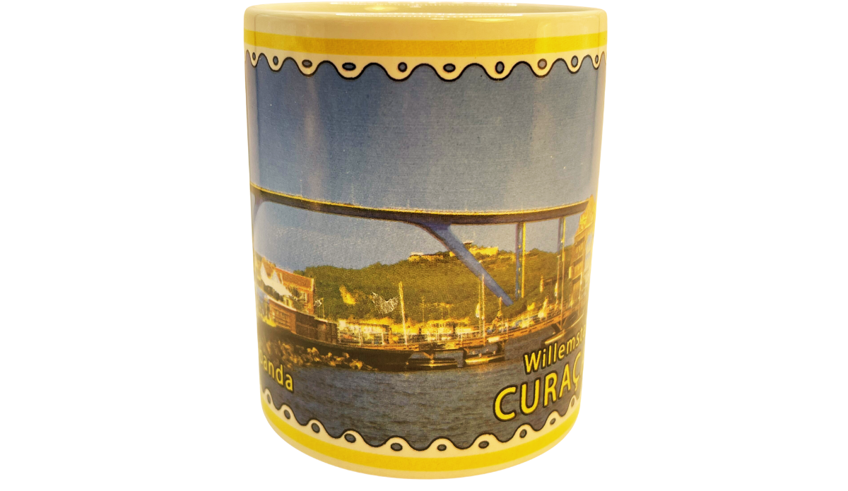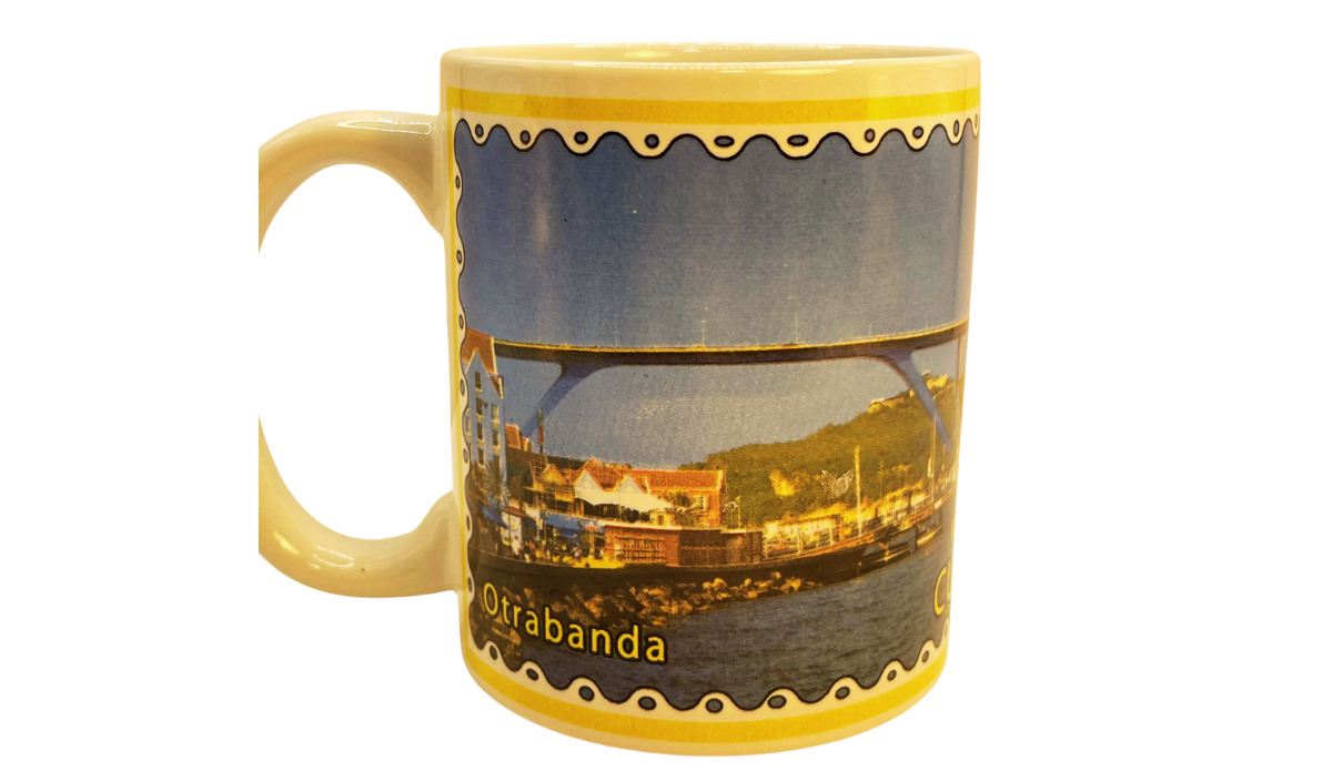 The Curacao Bridge View Mug is the perfect #cupofmood for reliving vibrant island moments with every sip. Right away, the colorful waterfront of Willemstad wraps around the mug in a glowing panoramic view. At the same time, the bright yellow border frames the scene like a postcard brought to life. Because of that, every glance feels like stepping right back into Curaçao sunshine.