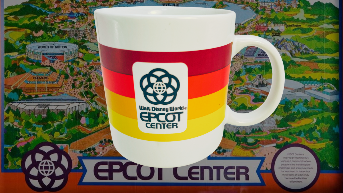 Because this mug features the original EPCOT Center logo and warm sunset stripe design, it carries the visual identity of Disney’s early EPCOT era. Fans instantly recognize the retro EPCOT emblem and bold color bands. As a result, the mug feels like a small piece of Disney park history.