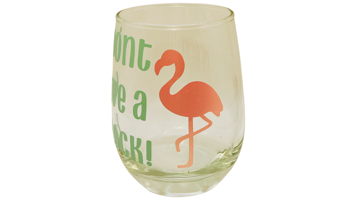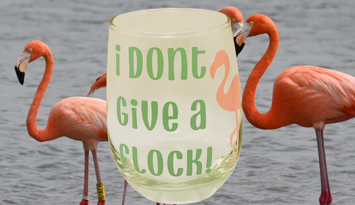 Altogether, the I Dont Give A Flock Flamingo Stemless Wine Glass turns a simple drink into a full mood moment.