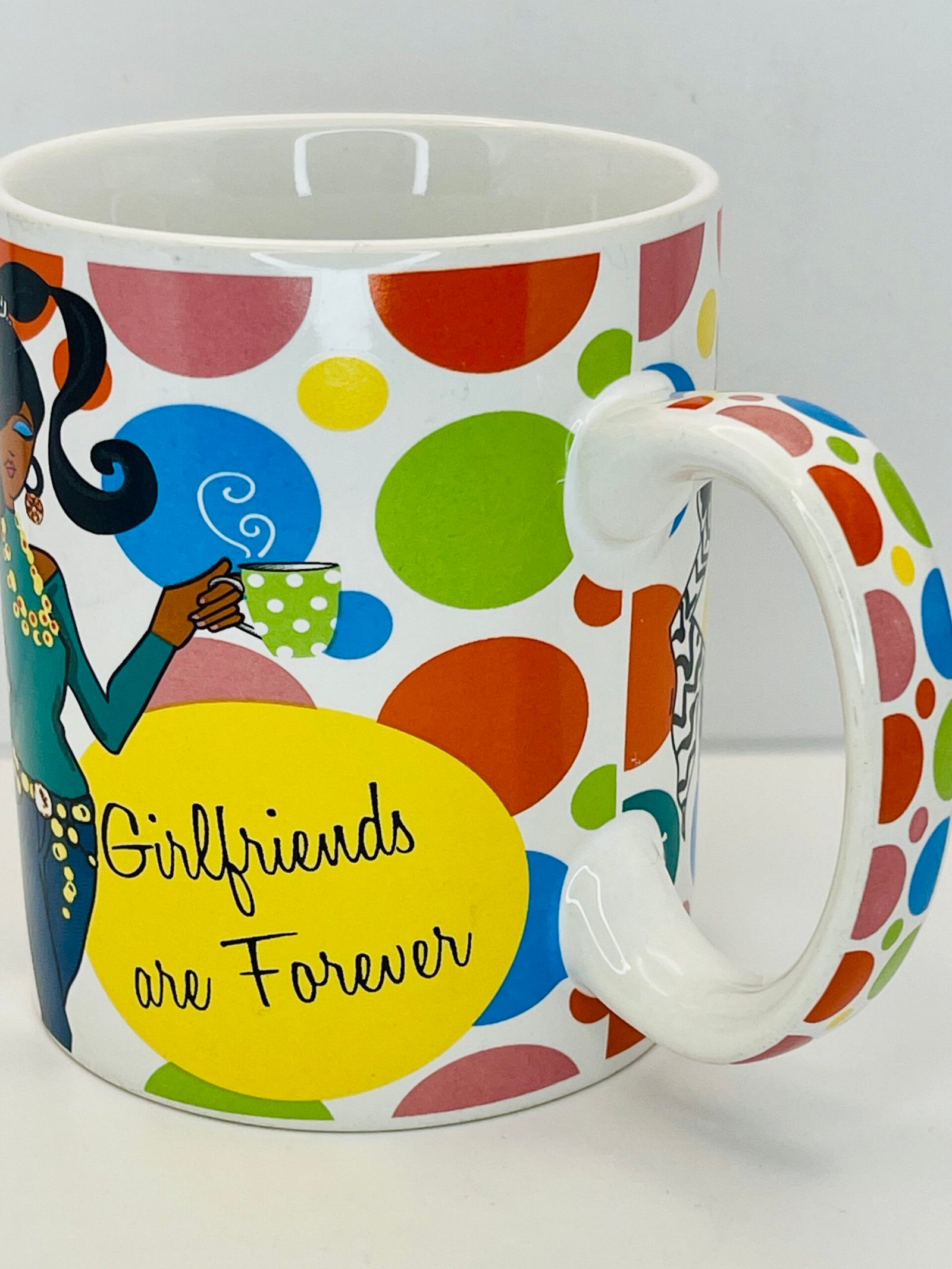 Indeed this charming 12-ounce coffee mug celebrates the timeless bond of friendship with its heartwarming message, “Girlfriends Are Forever,”