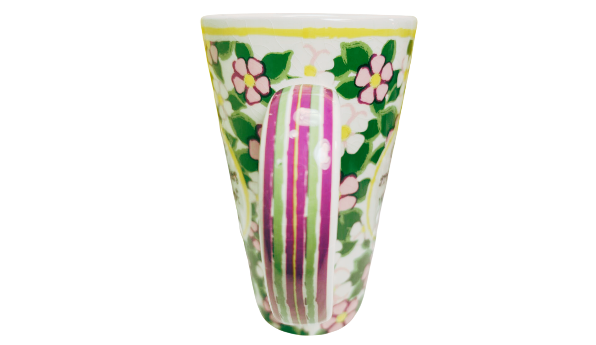 Because the floral design wraps around the mug, it creates a lively and continuous visual. As a result, it stands out beautifully whether displayed or in use.