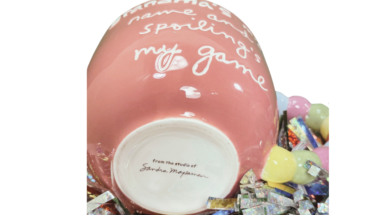 This Sandra Magsamen Spoiling Grandma Pink Mug comes from the studio of Sandra Magsamen, a designer known for heartfelt messages and joyful everyday pieces. That connection adds strong recognition and collectible appeal.