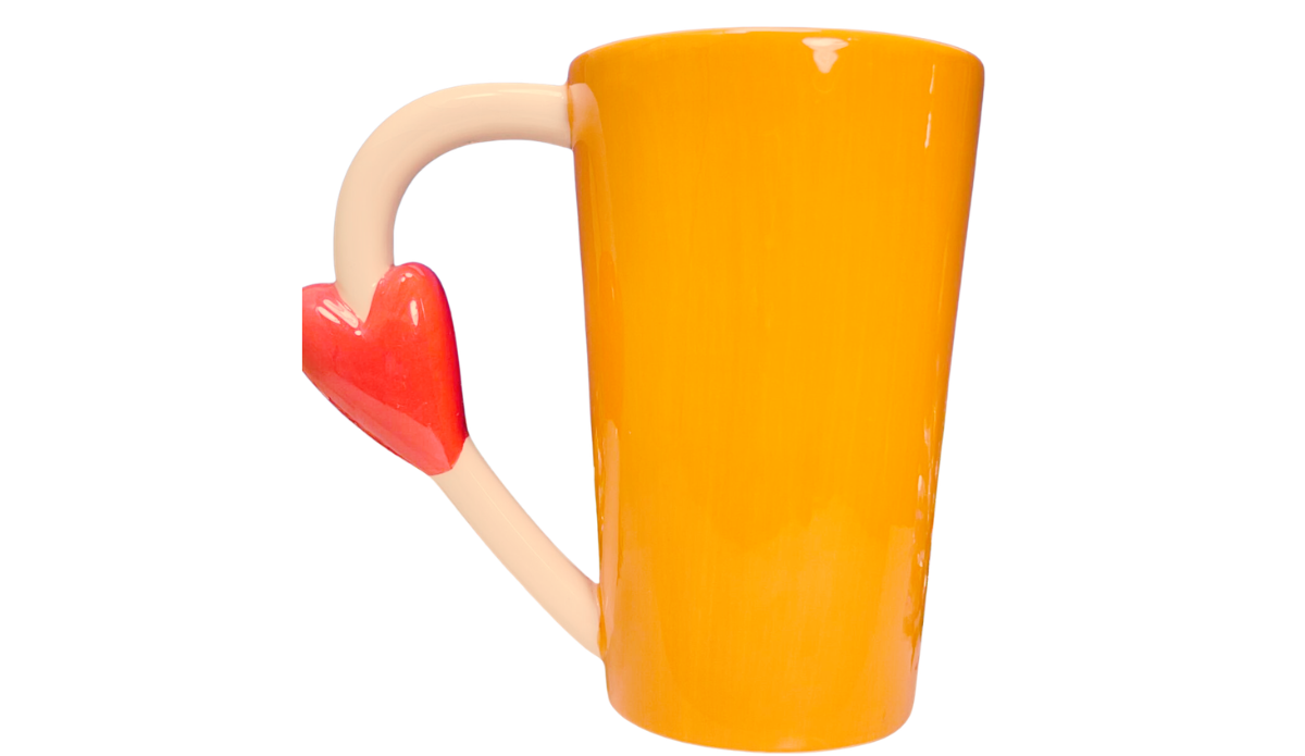 Because of the tall shape and heart-accented handle, the mug feels both expressive and easy to use. As a result, it stands out for both daily sipping and display.