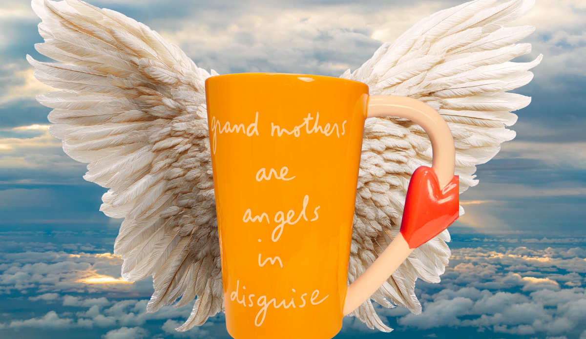 • Handwritten-style message: “Grandmothers are angels in disguise”