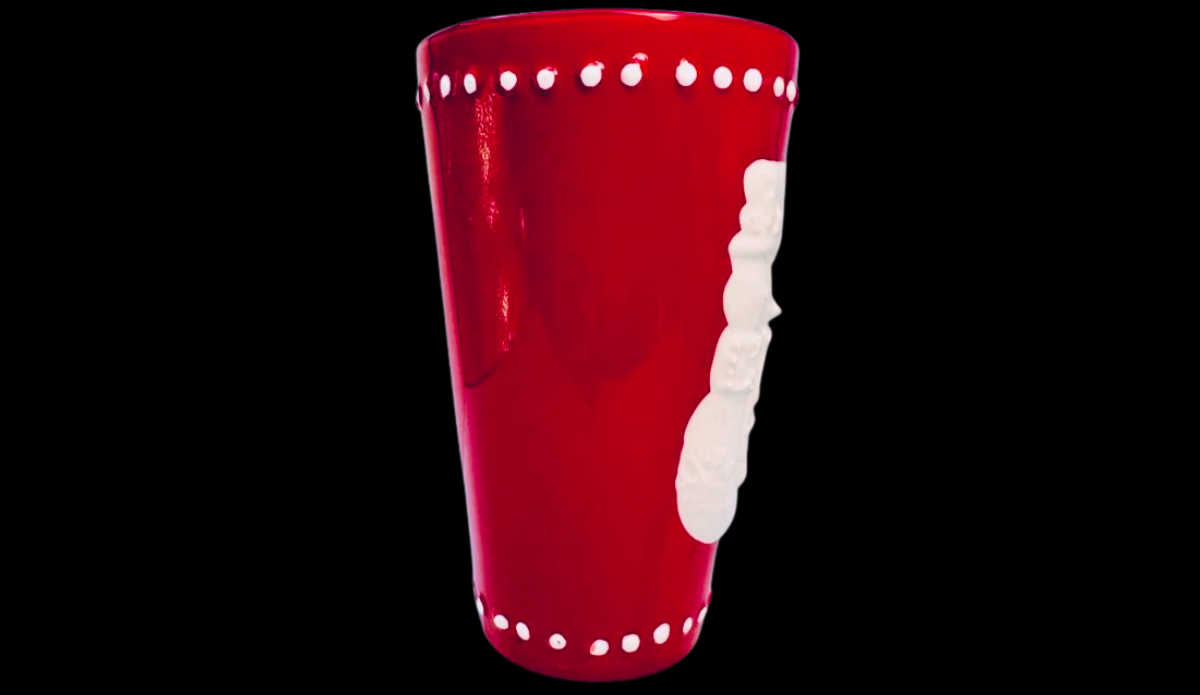 Color: Red exterior with embossed white snowman and raised white dot detailing