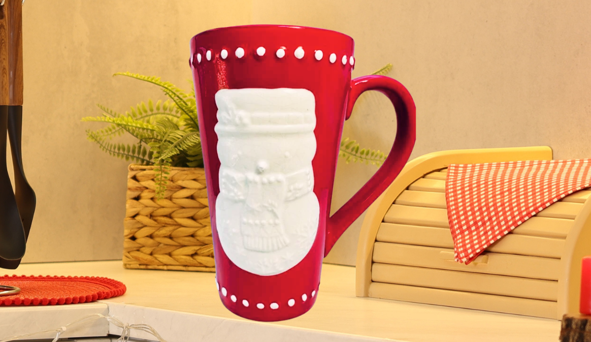First, the bright red ceramic instantly signals holiday warmth. At the same time, the raised white snowman adds texture you can actually feel. As a result, each sip feels festive and intentional.