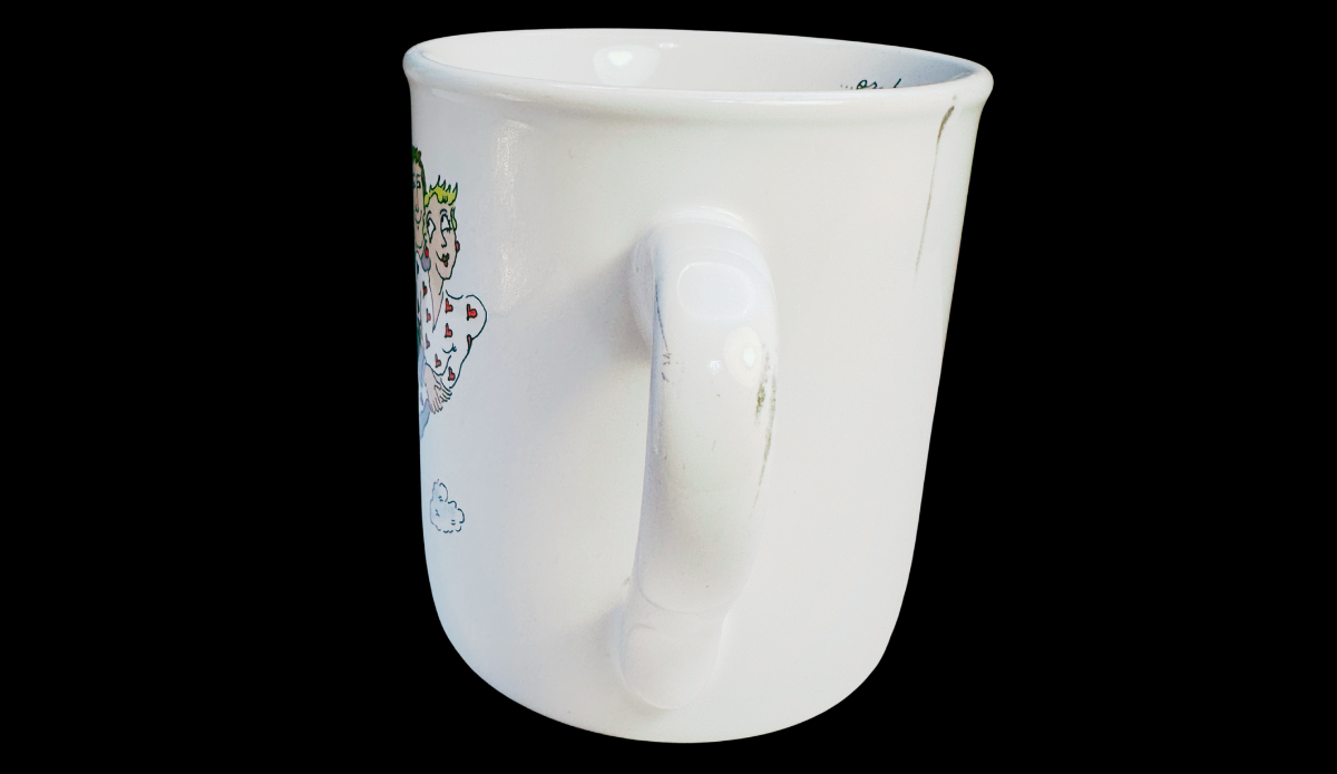 Because this mug comes from Hallmark’s vintage line, it carries collectible appeal for fans of classic card art and nostalgic romance.