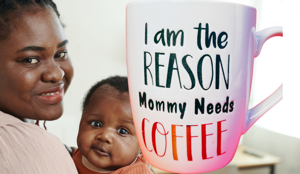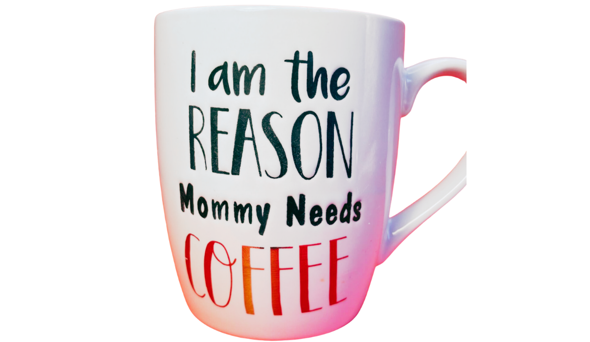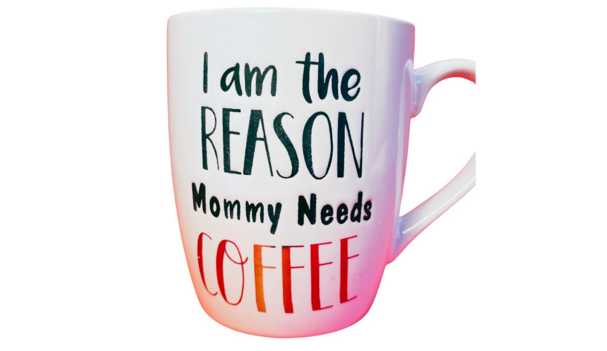 • Playful “Mommy Needs COFFEE” message for humor and relatability