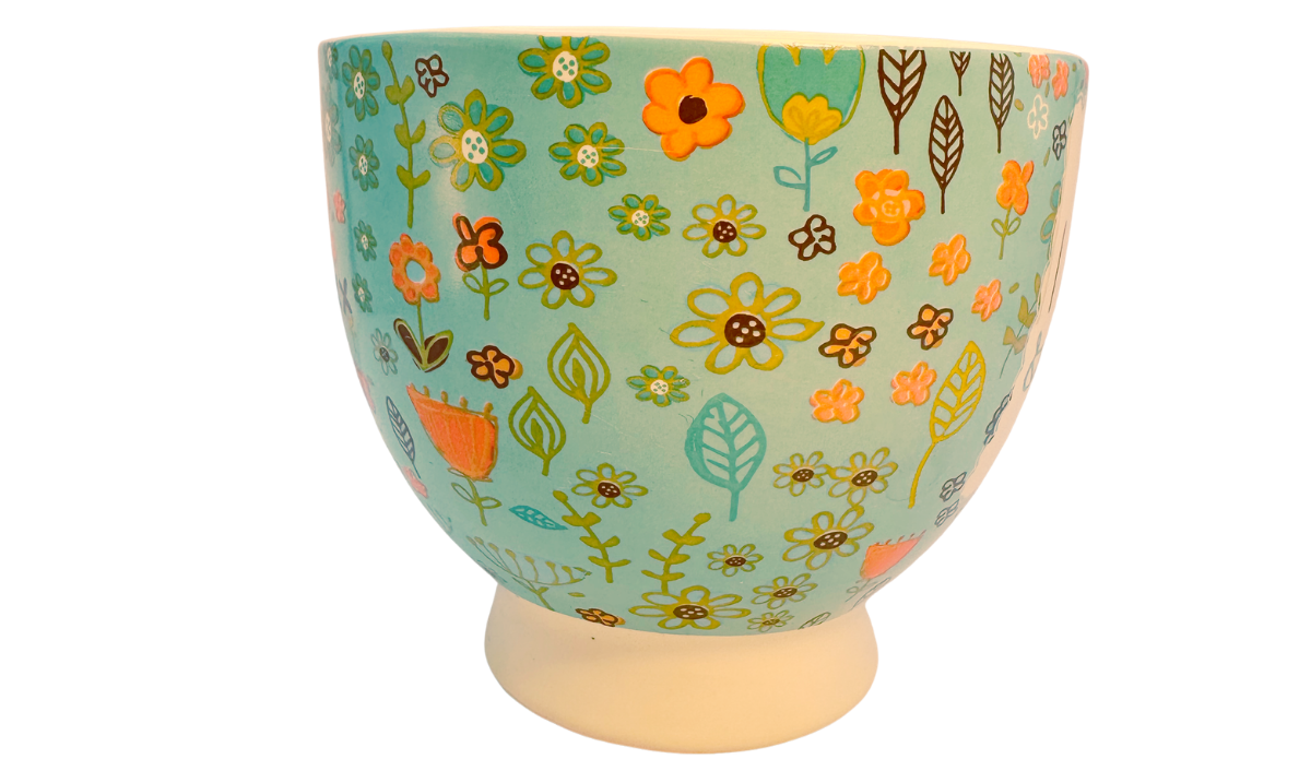 This floral soup mug stands out immediately because of its full wraparound artwork and sentimental message 👵🏽💖