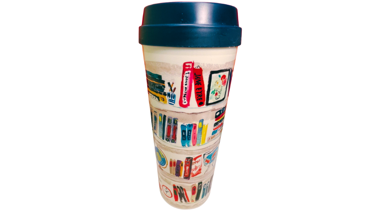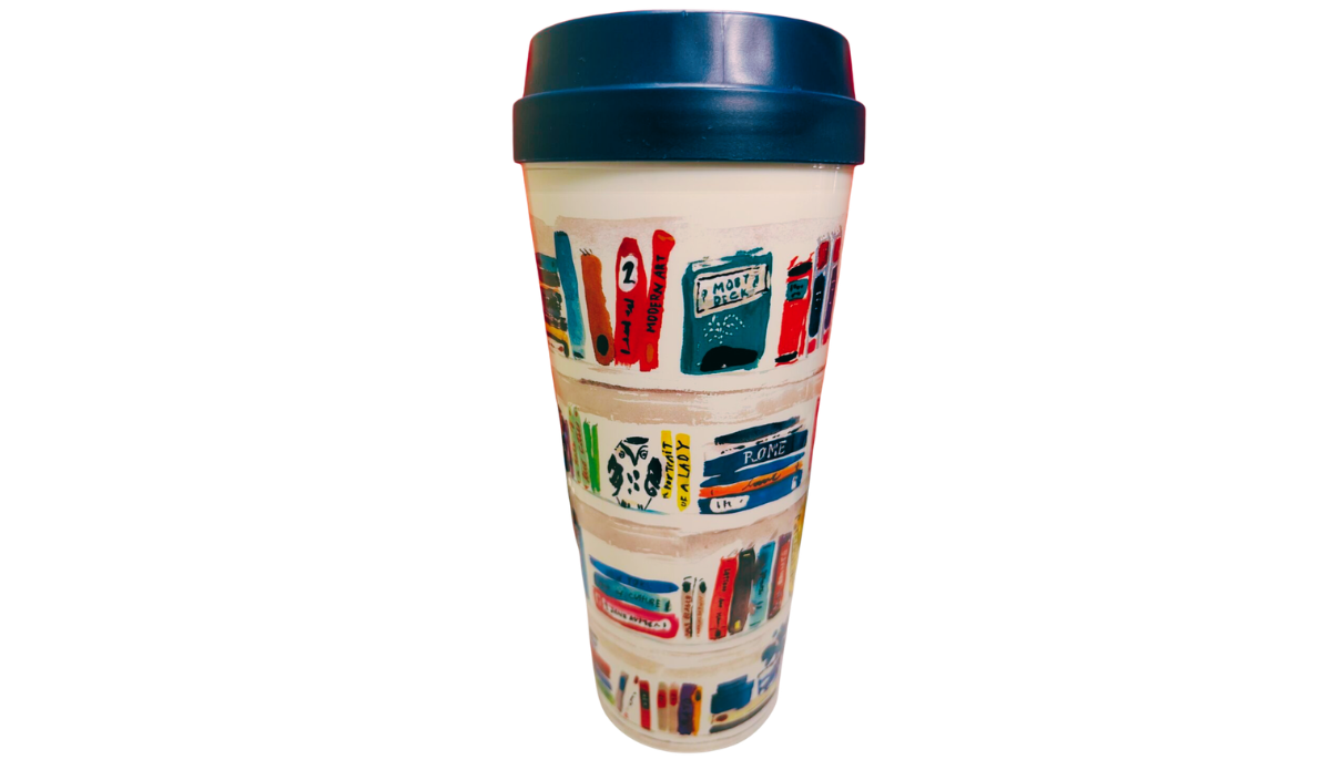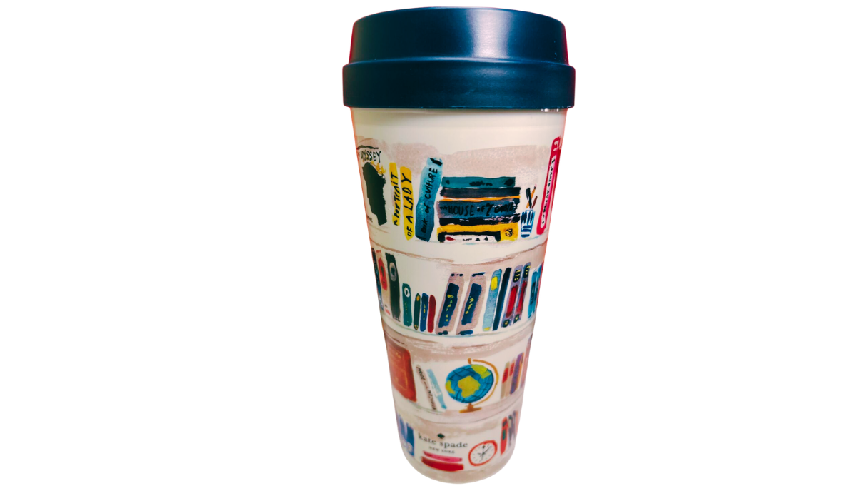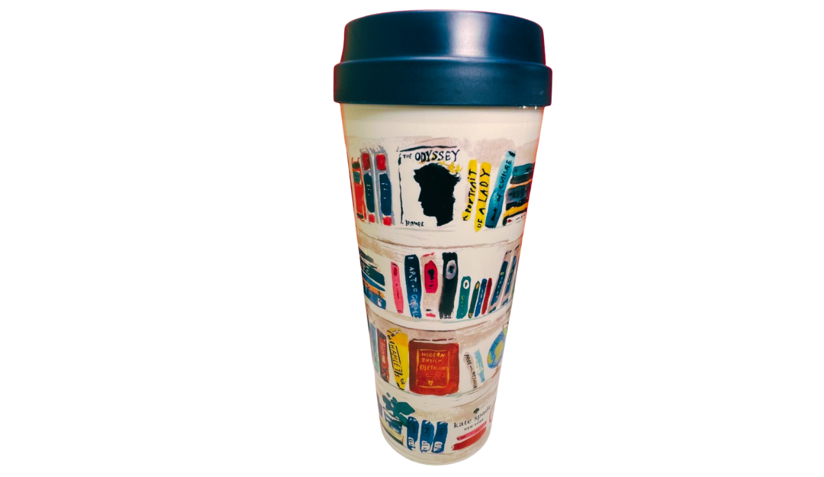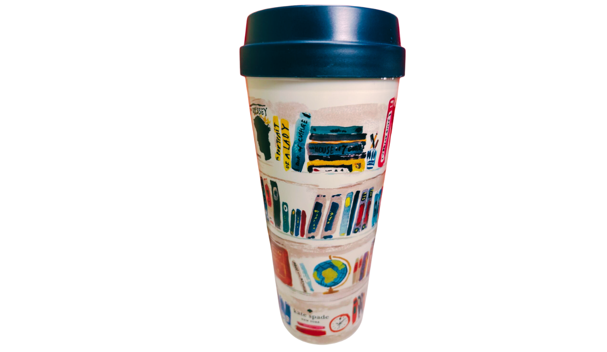 And right there in your hand is the Kate Spade Library Books Travel Tumbler.
