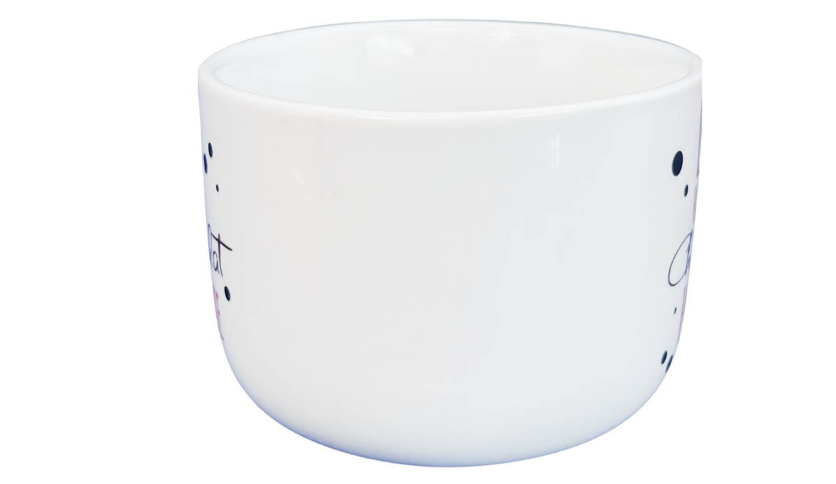 Right away, the clean white ceramic gives it a fresh, calm look. Then, as I take in the message, it lands in the most relatable way. Because of that, it feels simple, yet meaningful.