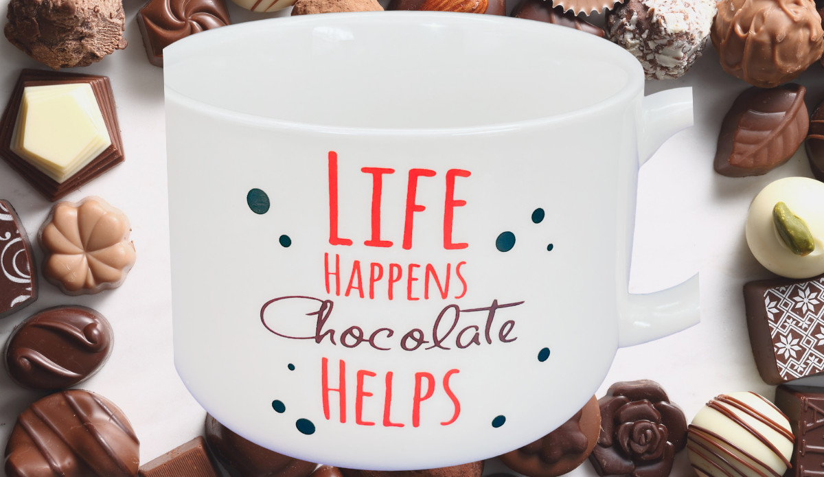 Chocolate-themed messaging continues to resonate across seasons. Because of that, mugs like this stay relevant and easy to gift.