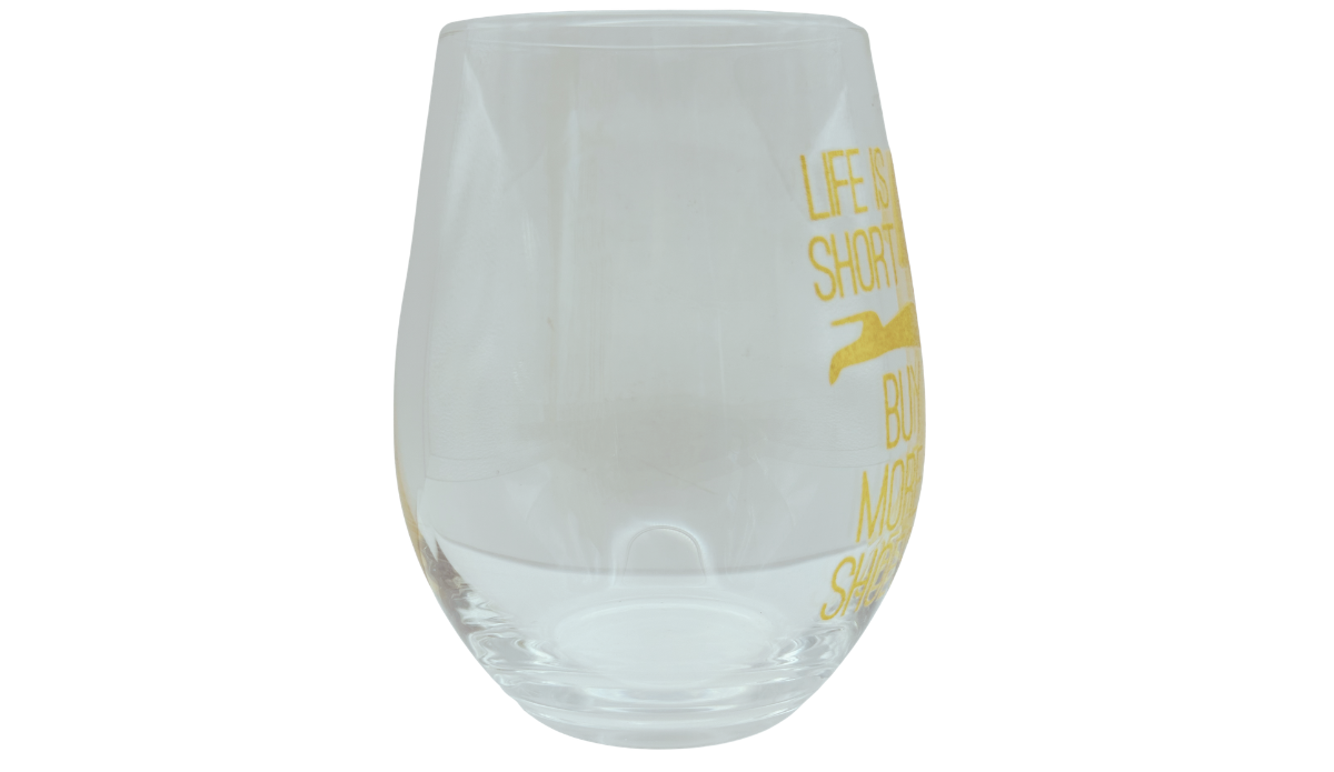 This Life Is Short Buy More Shoes Stemless Wine Glass is fun, confident, and effortlessly stylish 👠 Because of its bold message and clean design, it turns any sip into a small moment of joy.