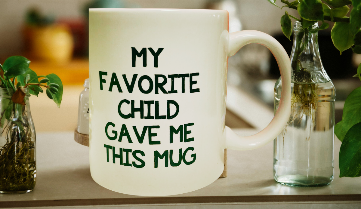 This mug keeps things simple, and that is exactly why it works so well. The phrase “My Favorite Child Gave Me This Mug” is bold, direct, and full of personality.