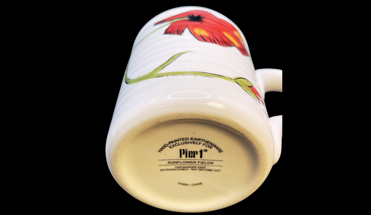 That same approach shows up in this piece. Because of that, the Pier 1 Sunflower Fields Mug reflects a time when everyday drinkware felt expressive and collected.