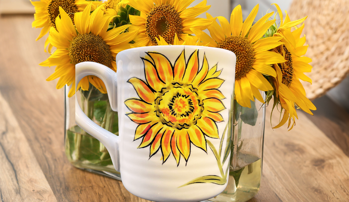 The rich yellow petals bring warmth and light. Because of that, the mug adds a natural glow to your space without needing anything extra.