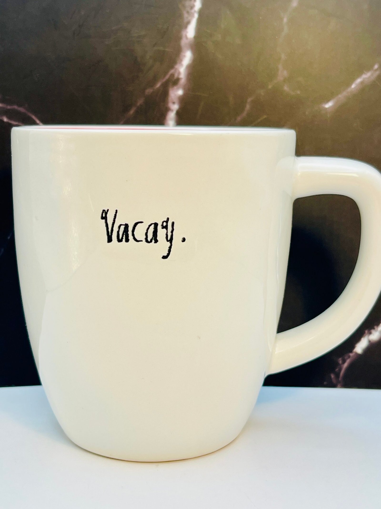The Rae Dunn Vacay Mug with Pink Interior is the perfect #cupofmood to make every sip feel like a getaway.