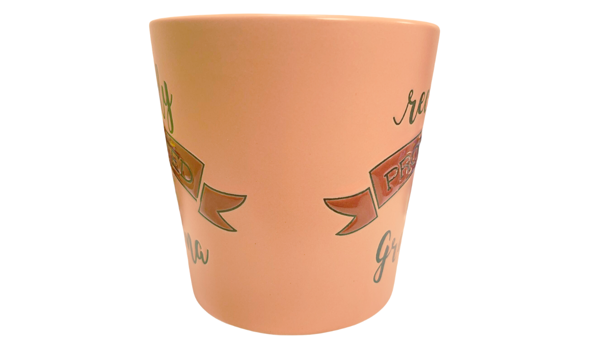 This mug works beautifully for both everyday use and display. Meanwhile, the pink finish adds a soft, calming presence that blends easily into any kitchen. In addition, the message keeps the design meaningful and easy to connect with. Because of that, it shows up beautifully in photos and on shelves.