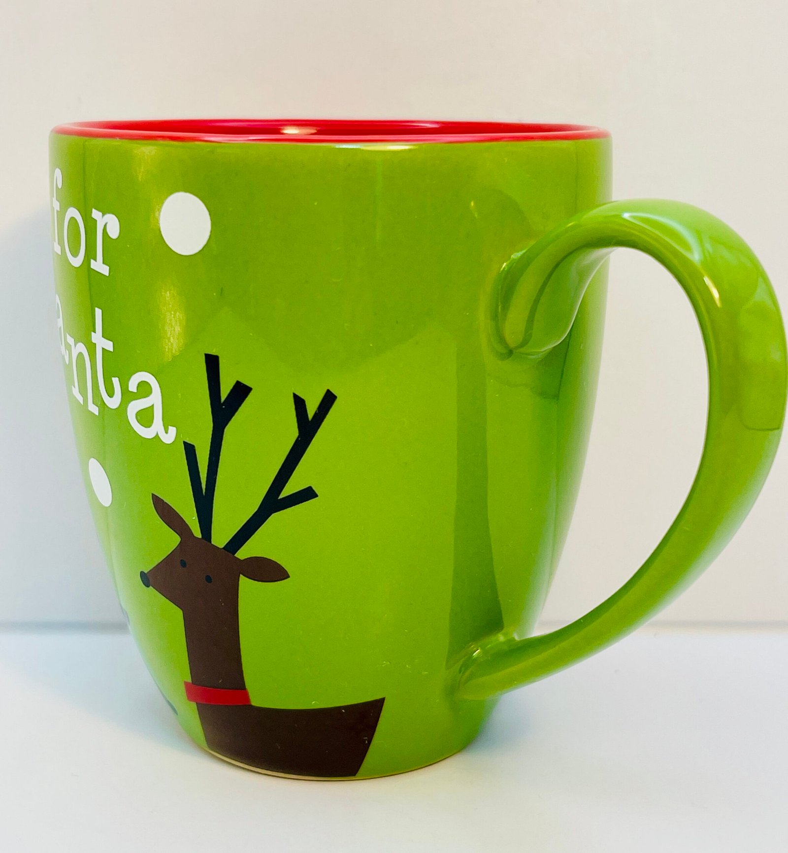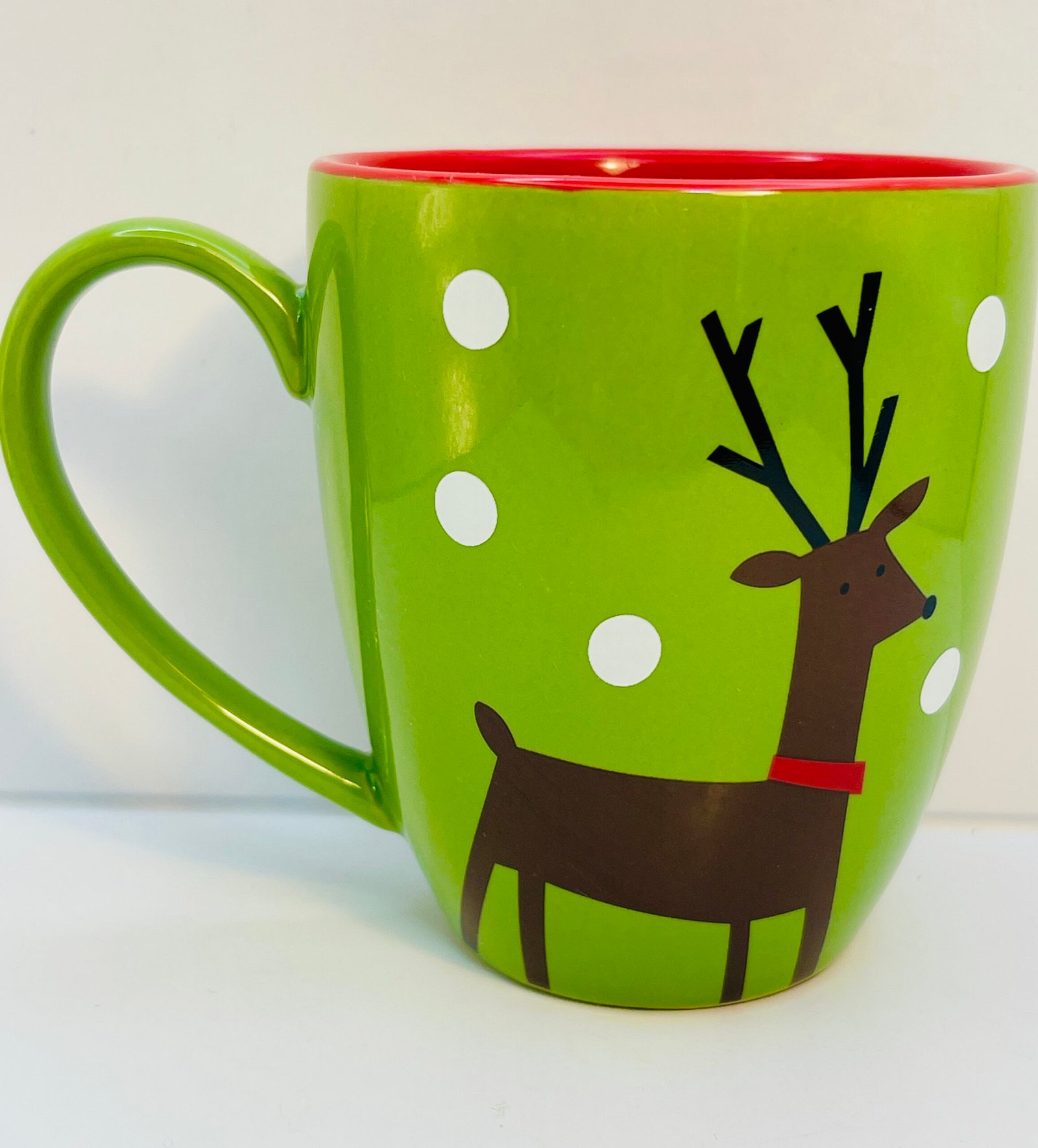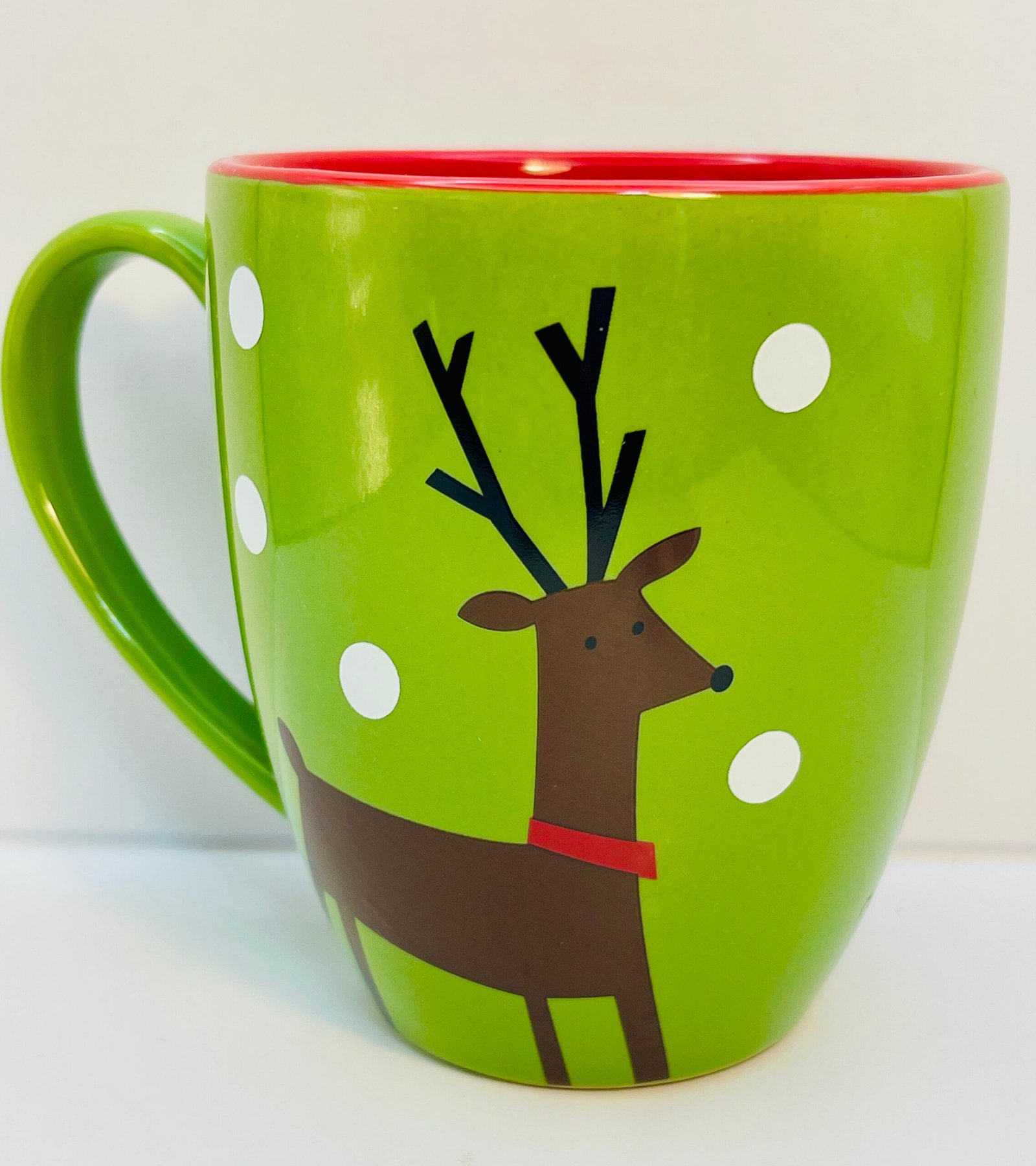 The Red Envelope Green Reindeer For Santa Mug is the perfect #cupofmood to start your holiday mornings with festive cheer!