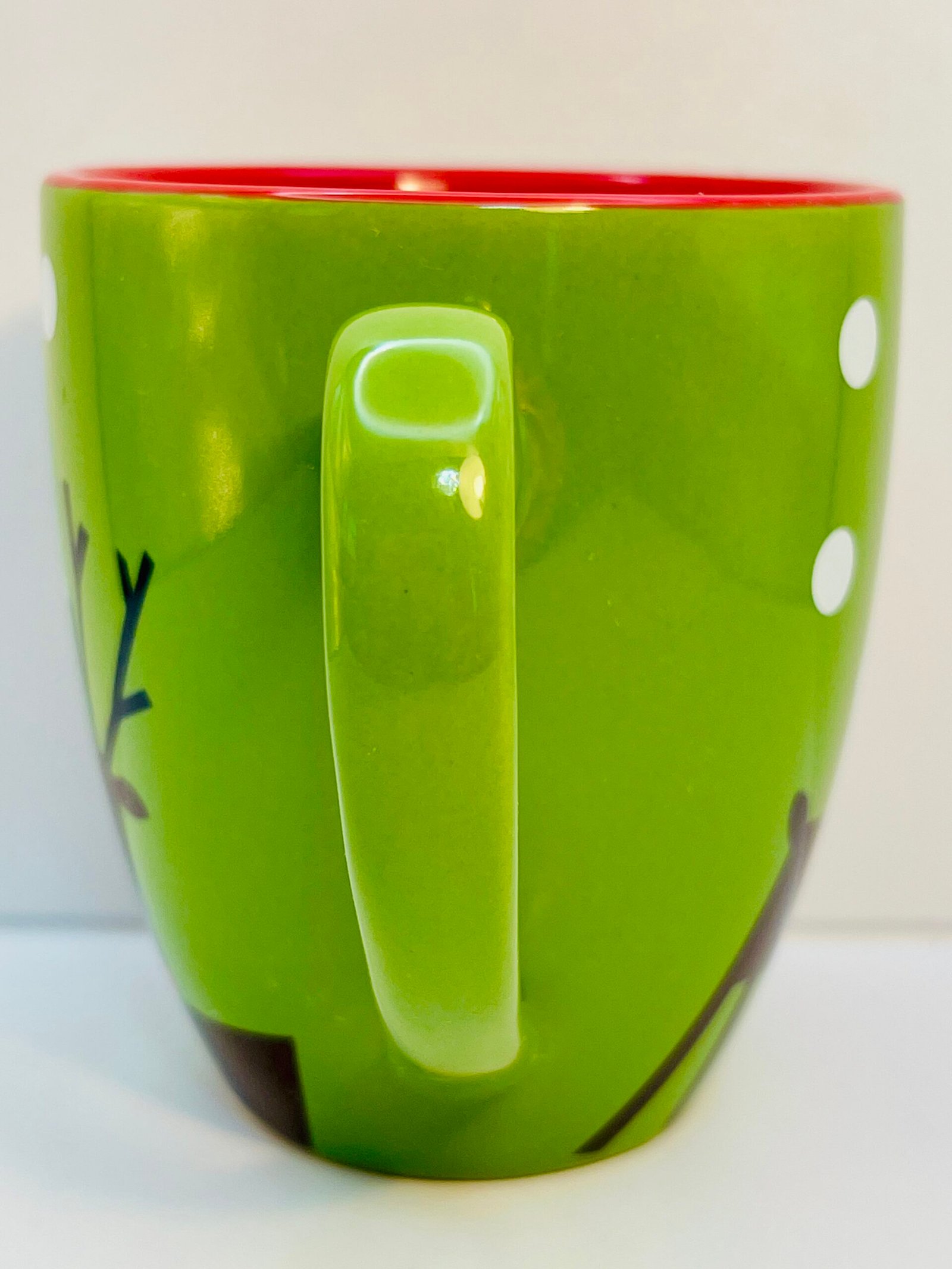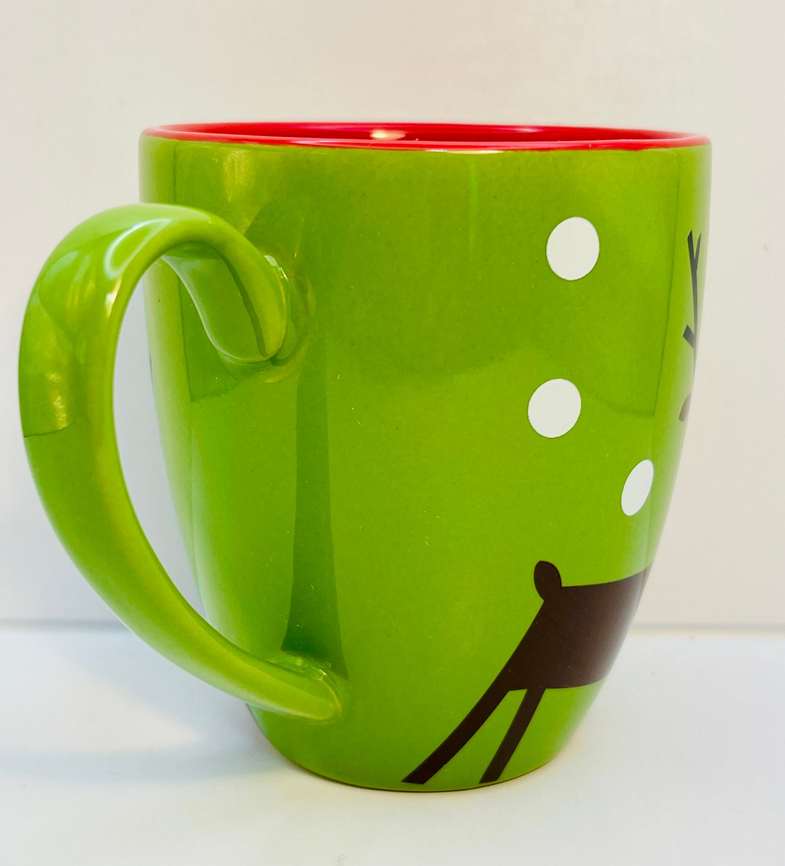 Indeed the Red Envelope Green Reindeer For Santa Mug brings whimsical holiday spirit to your kitchen with its vibrant green exterior. Cheerful white polka dots, and adorable cartoon reindeer frolicking around the base. It’s the perfect companion for your morning coffee, hot cocoa, or holiday tea. Whether you’re cozying up at home or gifting it to someone special.