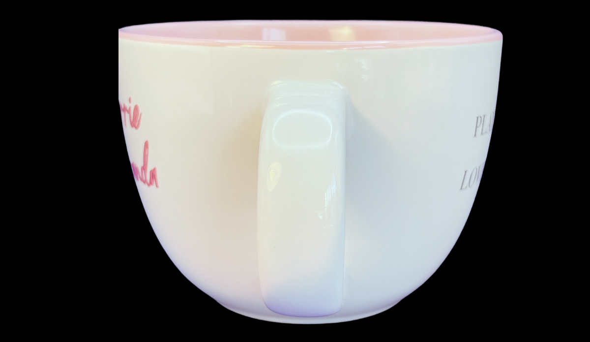 To begin with, this oversized ceramic mug features a clean white exterior and a soft pink interior. On one side, the Sex and the City Jumbo Soup Mug displays bold serif text with pink script accents. As a result, the design reflects Carrie and Miranda energy.