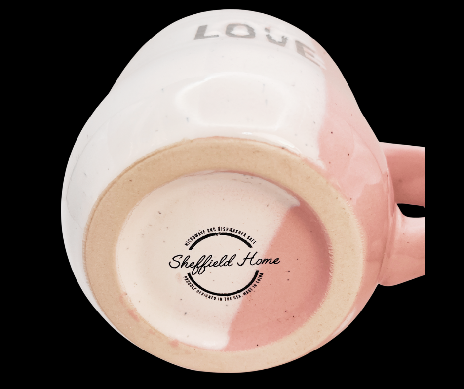 This ceramic and stoneware mug was produced by Sheffield Home and features a cozy, oversized shape.