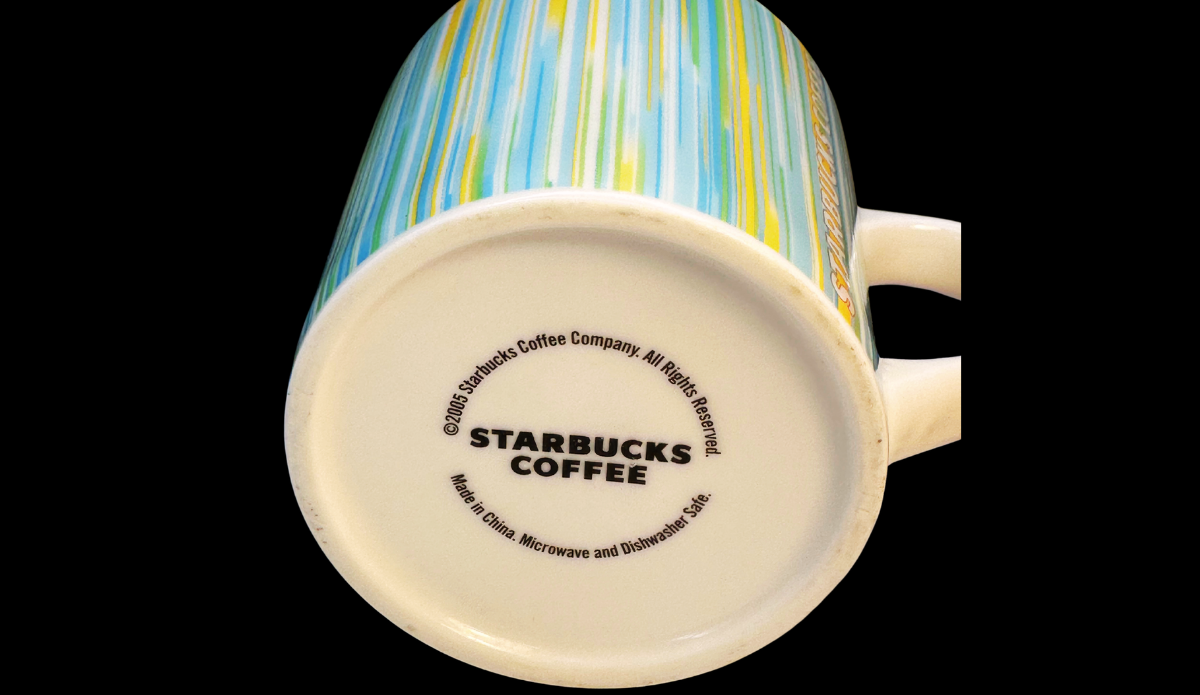 Because it is ceramic, the mug feels balanced and sturdy. At the same time, the smooth glaze keeps the stripes vibrant and clean. As can be seen on the base, the Starbucks Coffee marking confirms authenticity.