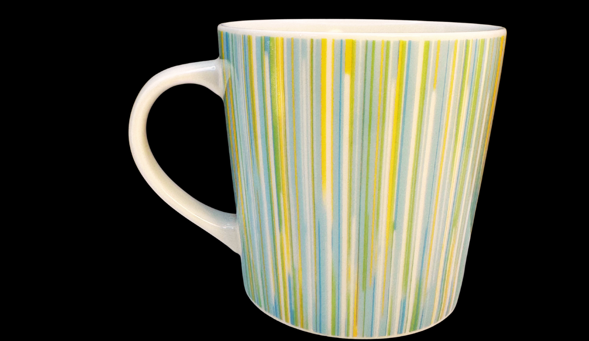 This mug is ceramic and suitable for everyday beverage use. Hand washing helps preserve the stripe clarity over time.