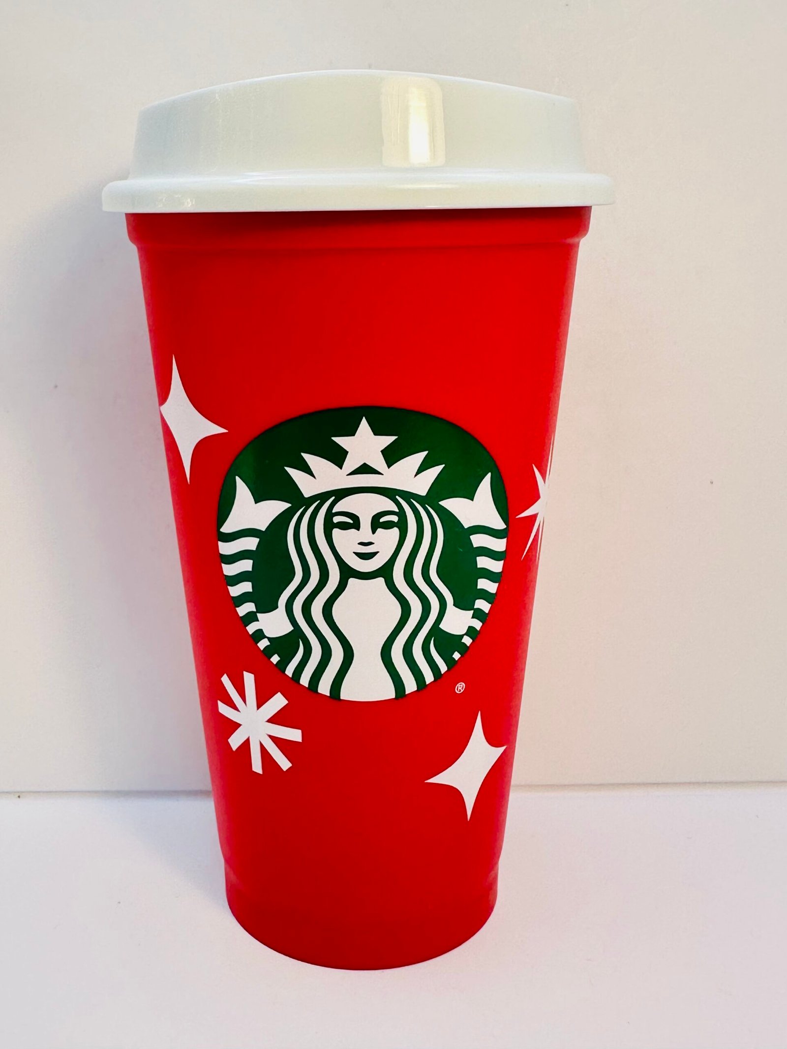 Moreover it’s featuring Starbucks’ classic, bold holiday red. A crisp white lid, and a sprinkle of seasonal starburst designs. This cup isn’t just reusable—it’s undeniably giftable, collectible, and downright adorable.