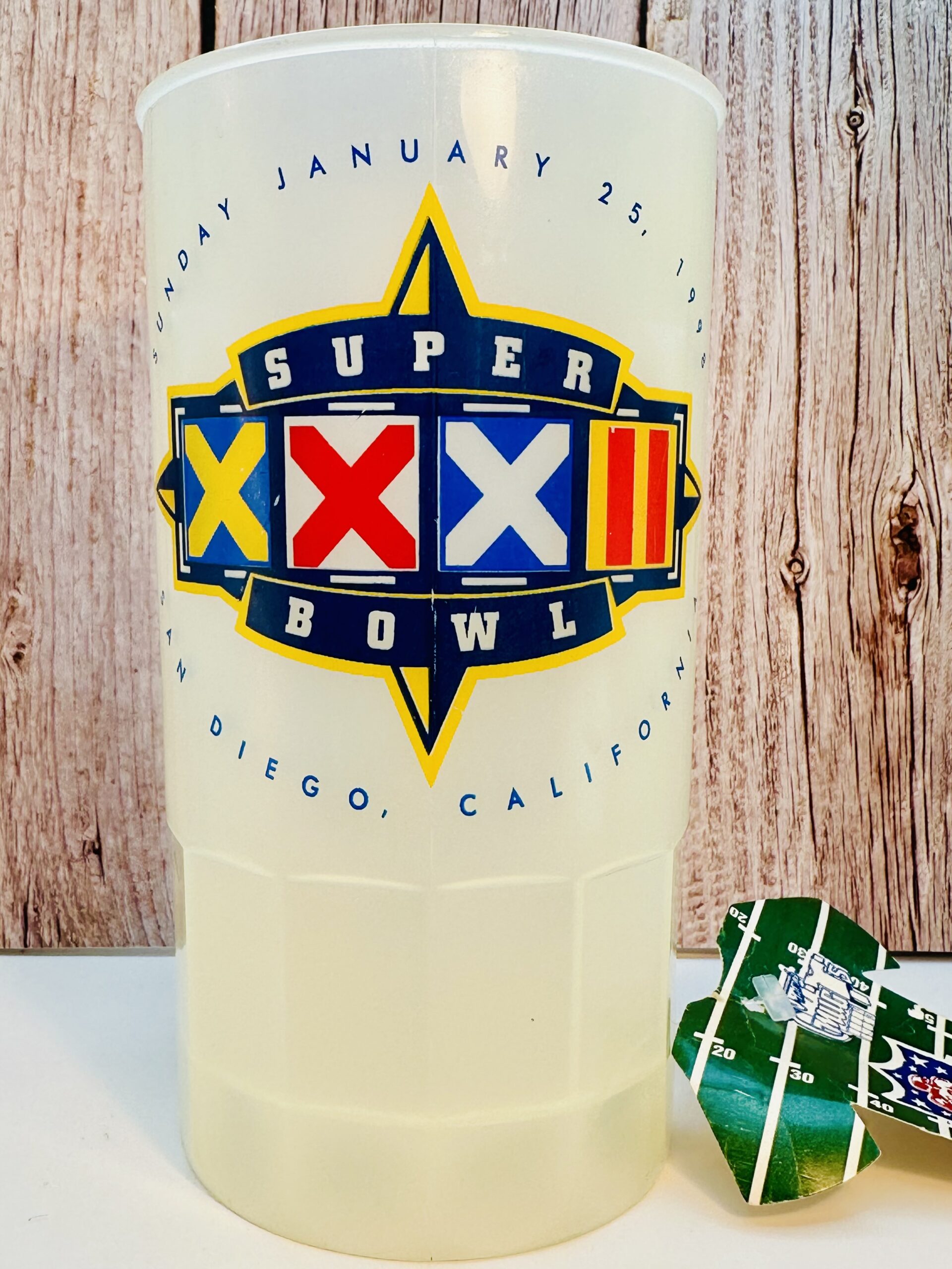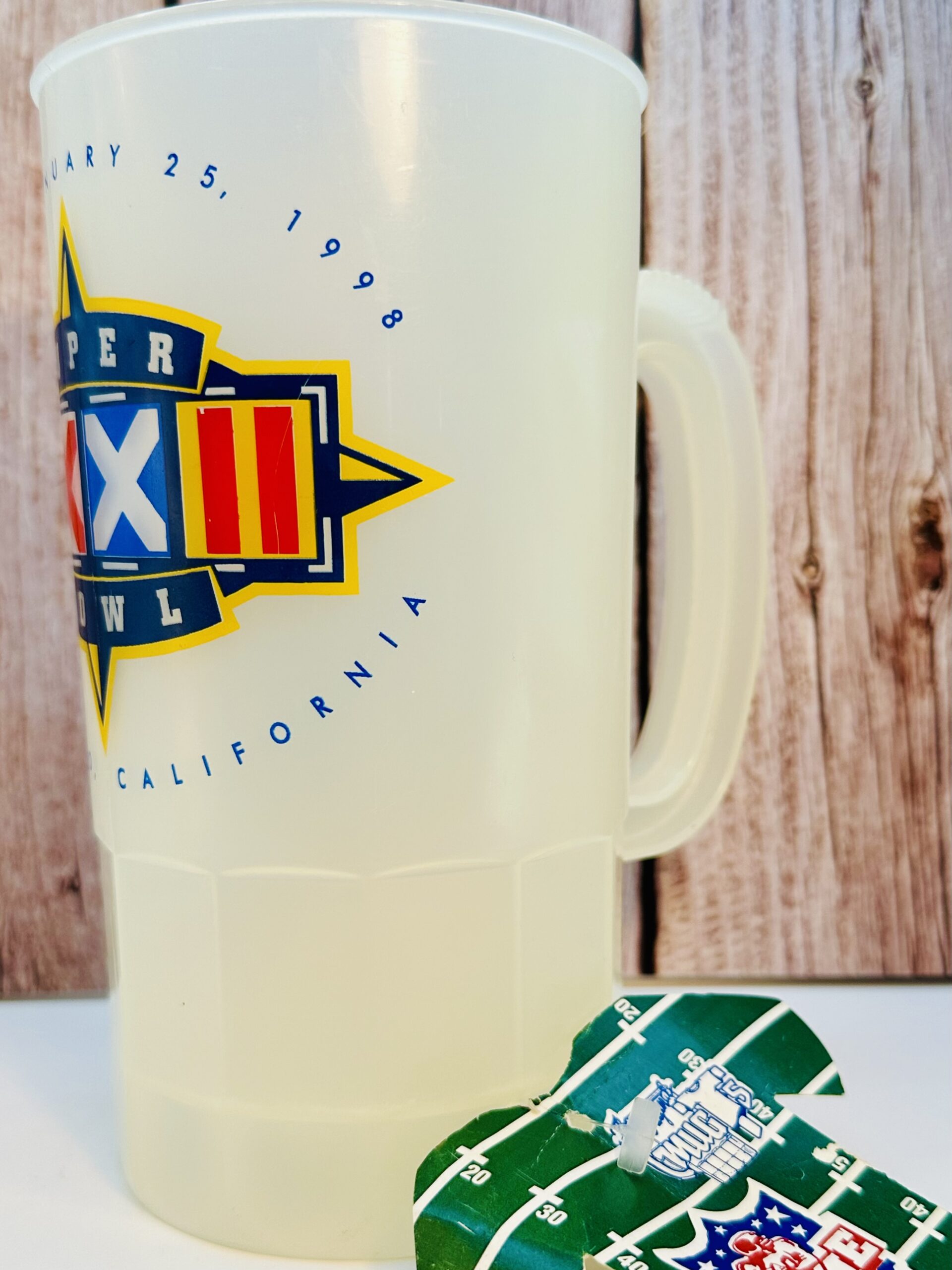 In fact this 16-ounce beer mug commemorates the historic Super Bowl XXXII held on January 25, 1998, in San Diego, California.