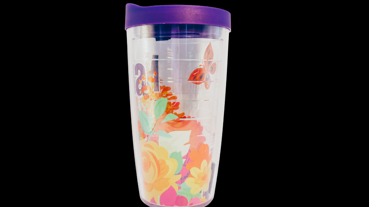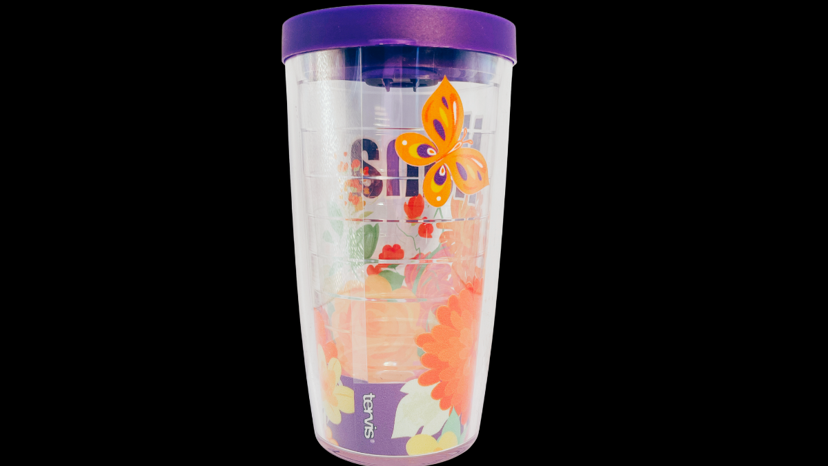 Meanwhile, the purple travel lid adds a bright finishing touch while helping keep drinks secure throughout the day. Because the artwork is sealed inside the clear double-wall insulated design, the floral pattern stays vibrant while the tumbler continues to deliver the reliable drinkware performance that Tervis is known for.