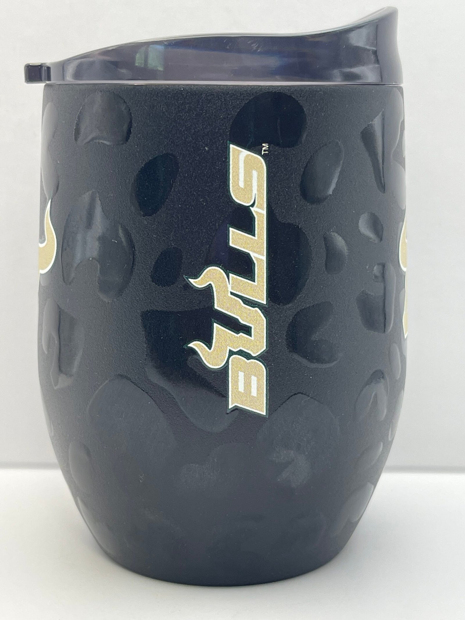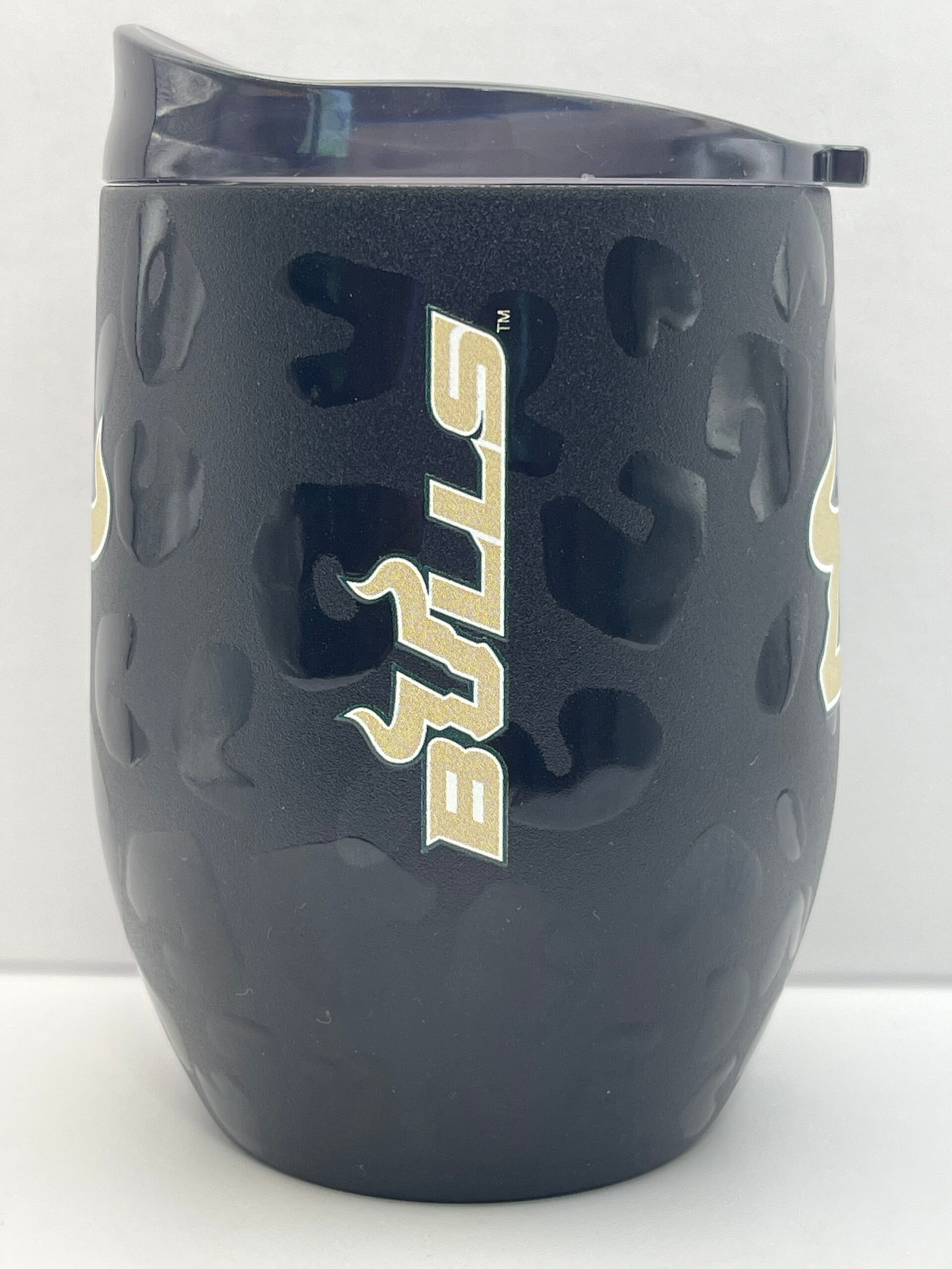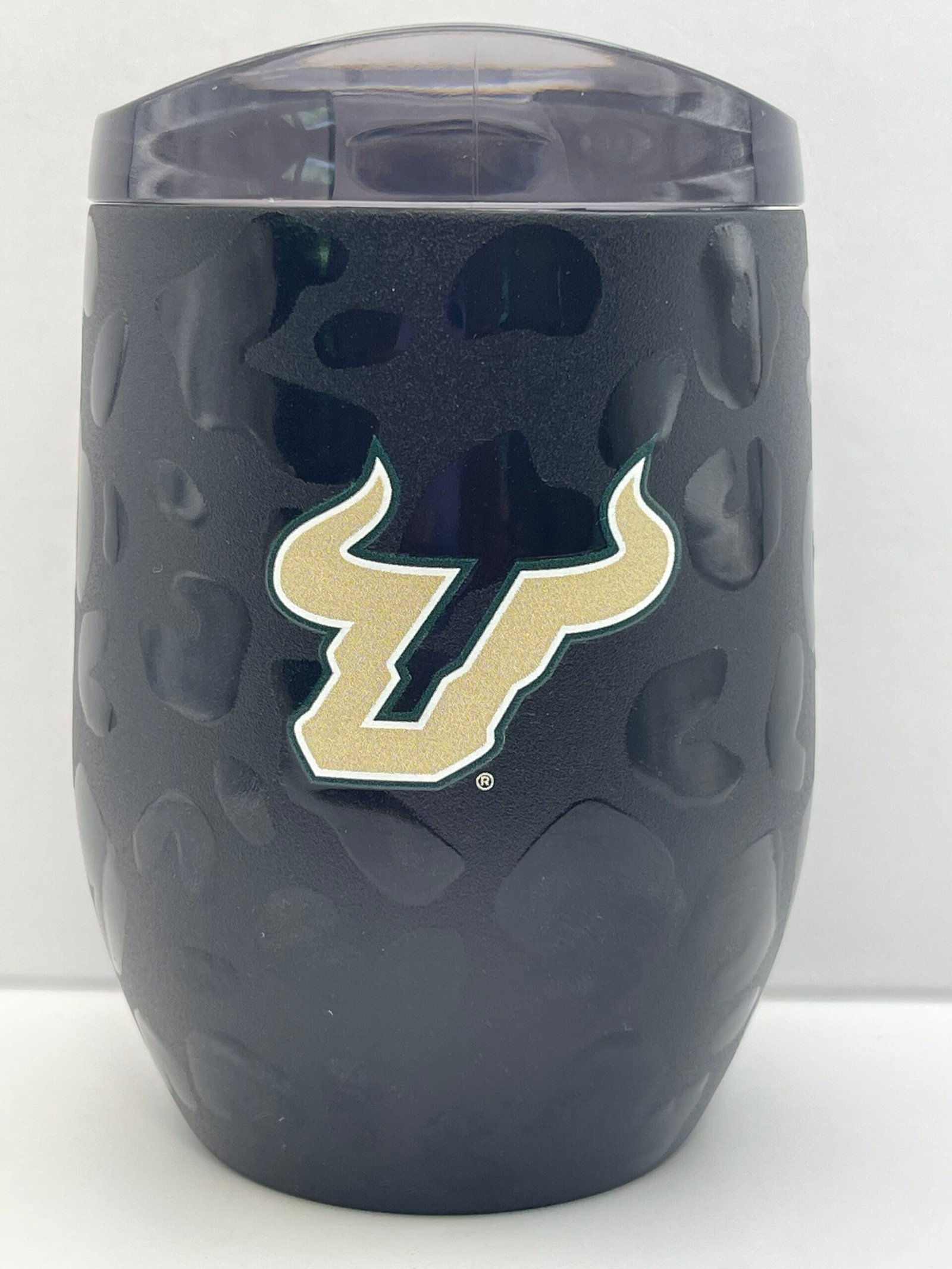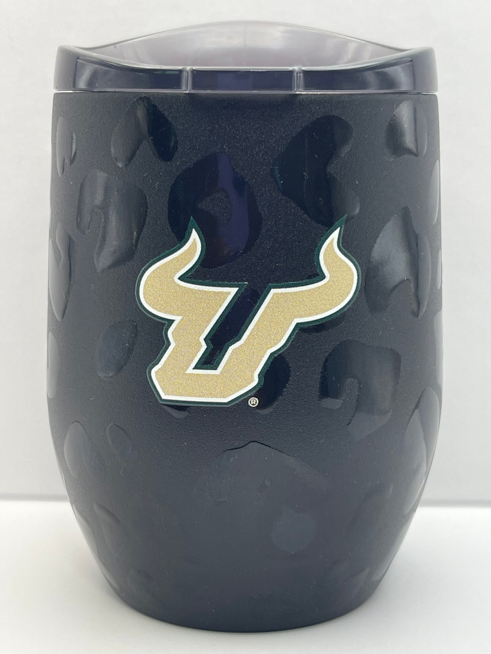 Indeed this isn’t your average college drinkware. Wrapped in a chic raised leopard print pattern. This matte black stainless steel tumbler brings a bold, modern edge to your University of South Florida spirit.