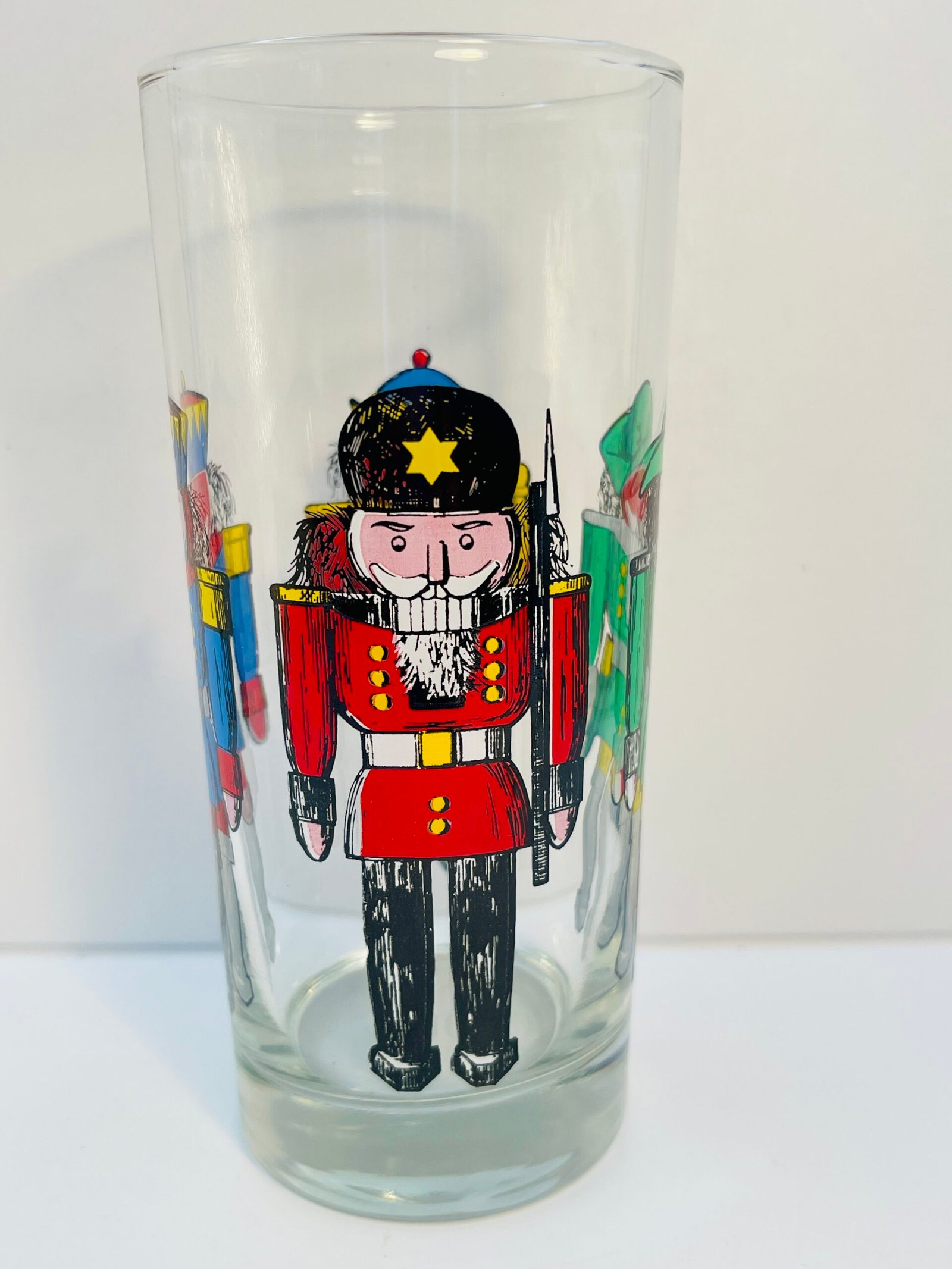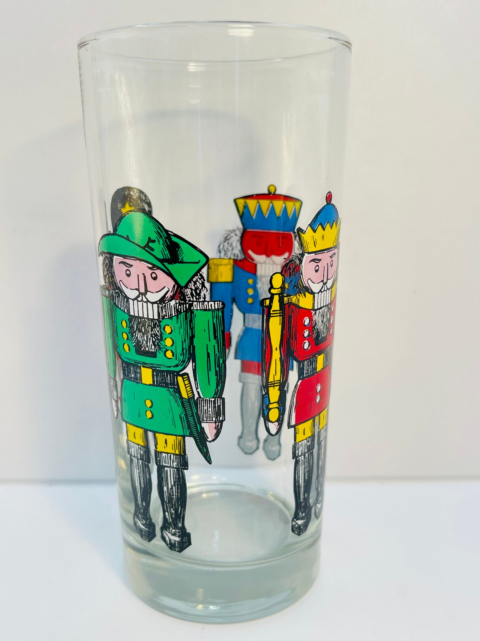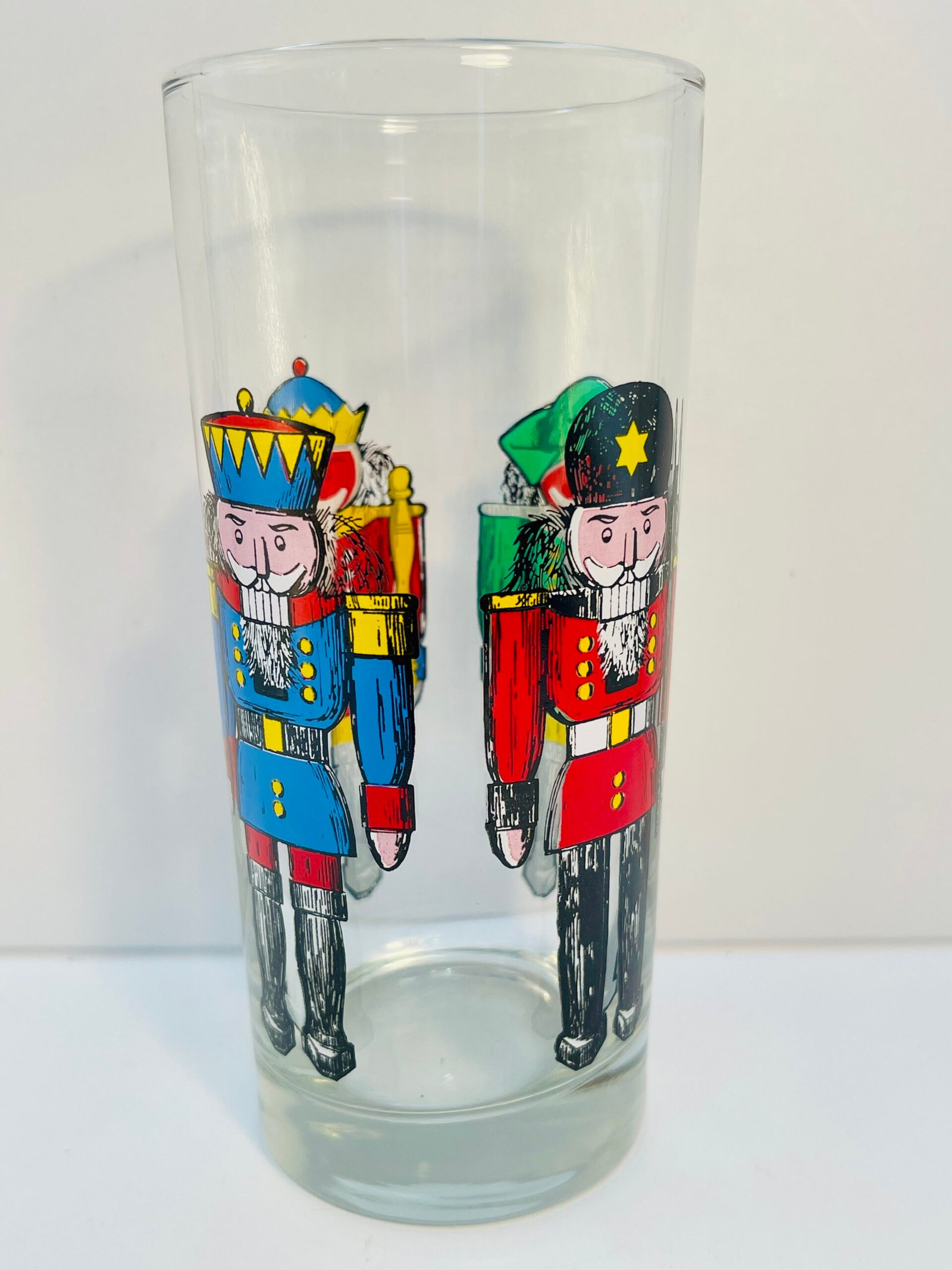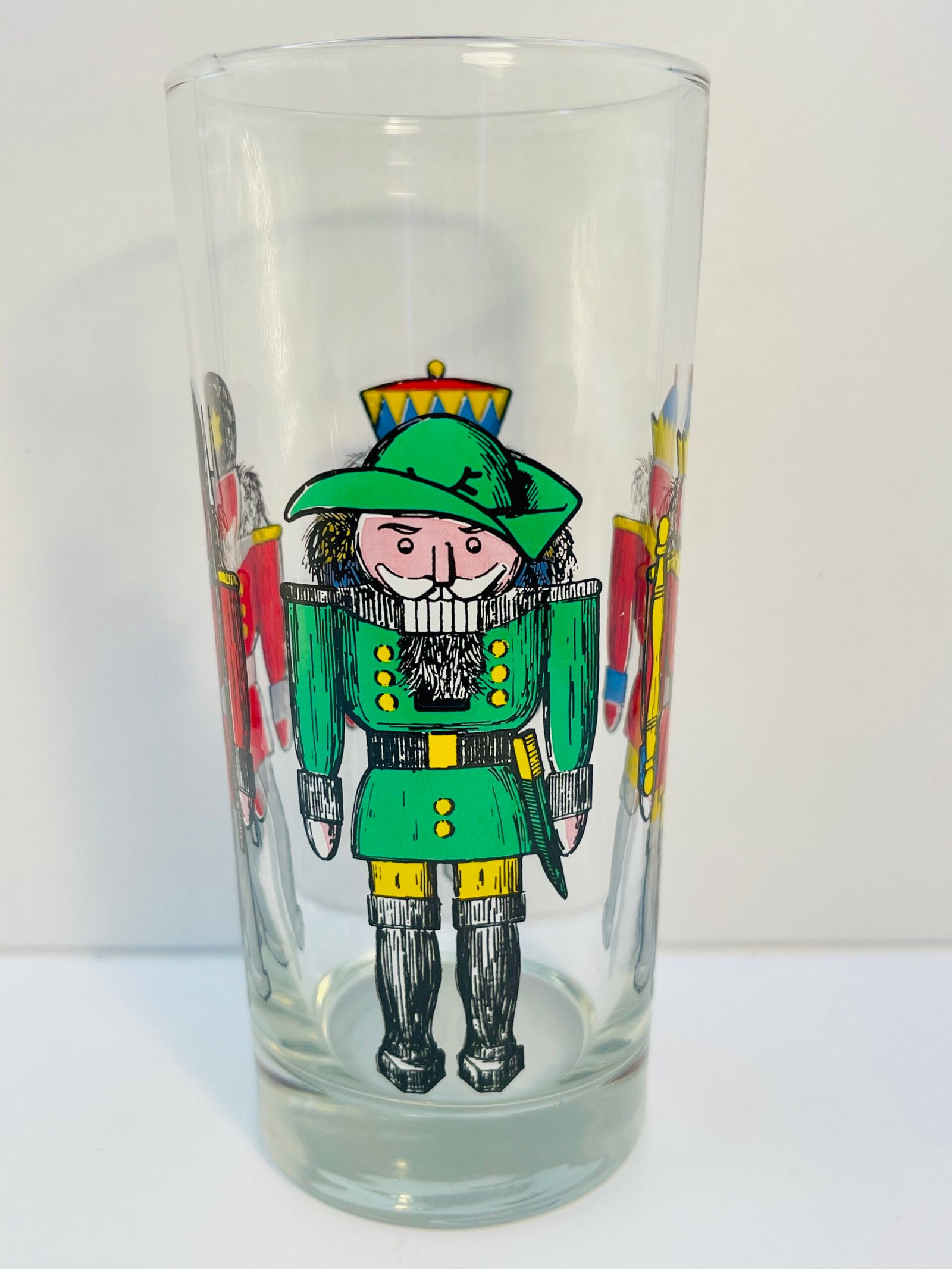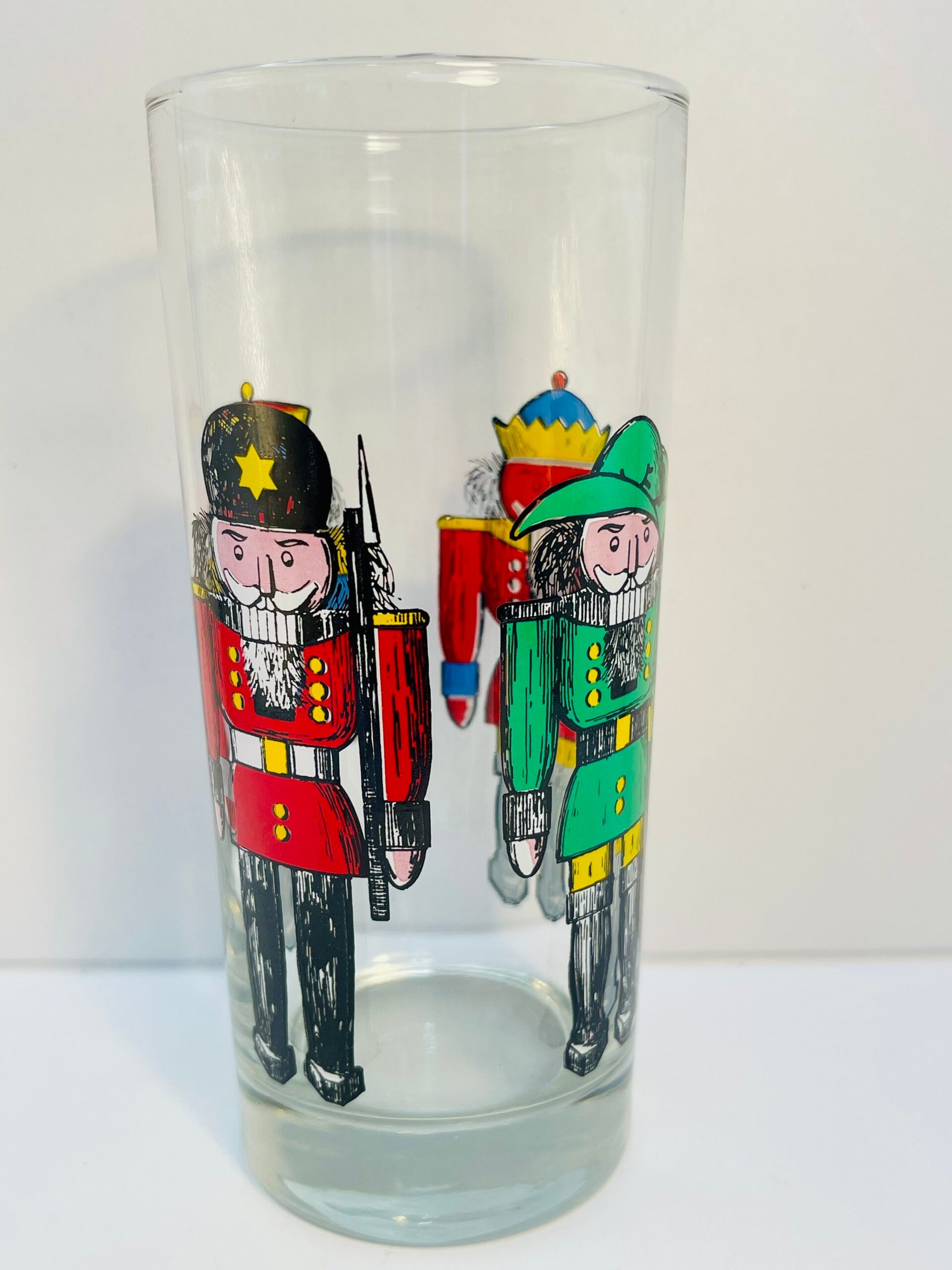 Indeed made by the iconic Libbey Glass Company in the 1980s. This old fashioned–style tumbler features a vibrant, wraparound design filled with colorful nutcracker toy soldiers dressed in various uniforms.