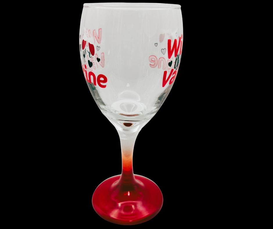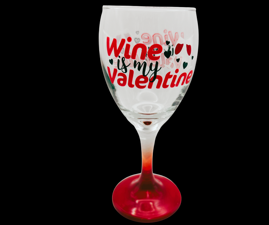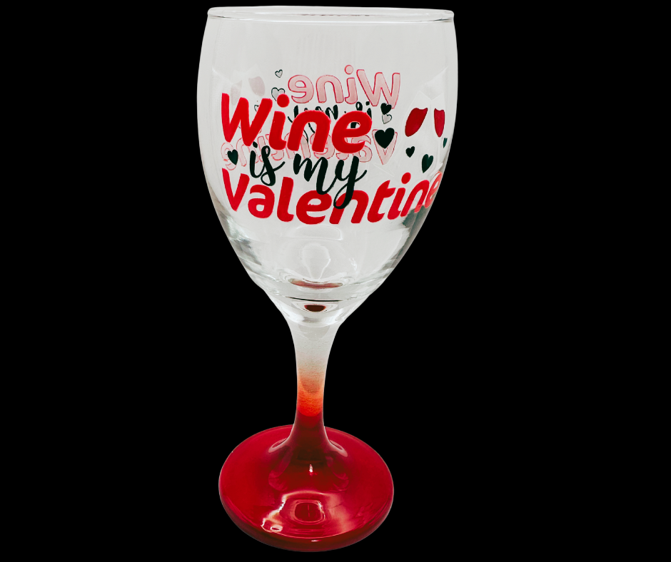 • Design: “Wine Is My Valentine” text with heart accents