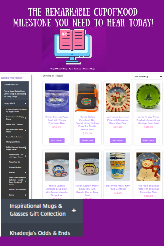 The CupofMood milestone isn’t just about inventory. It’s about building a space where people can explore, learn, and connect. That’s where the rest of the website comes in. I publish the CupofMood Blog fresh content about three times a week. I write about drinkware education, collector insights, gift guides, and easy, comforting recipes. Collectors Corner invites people to share their stories.